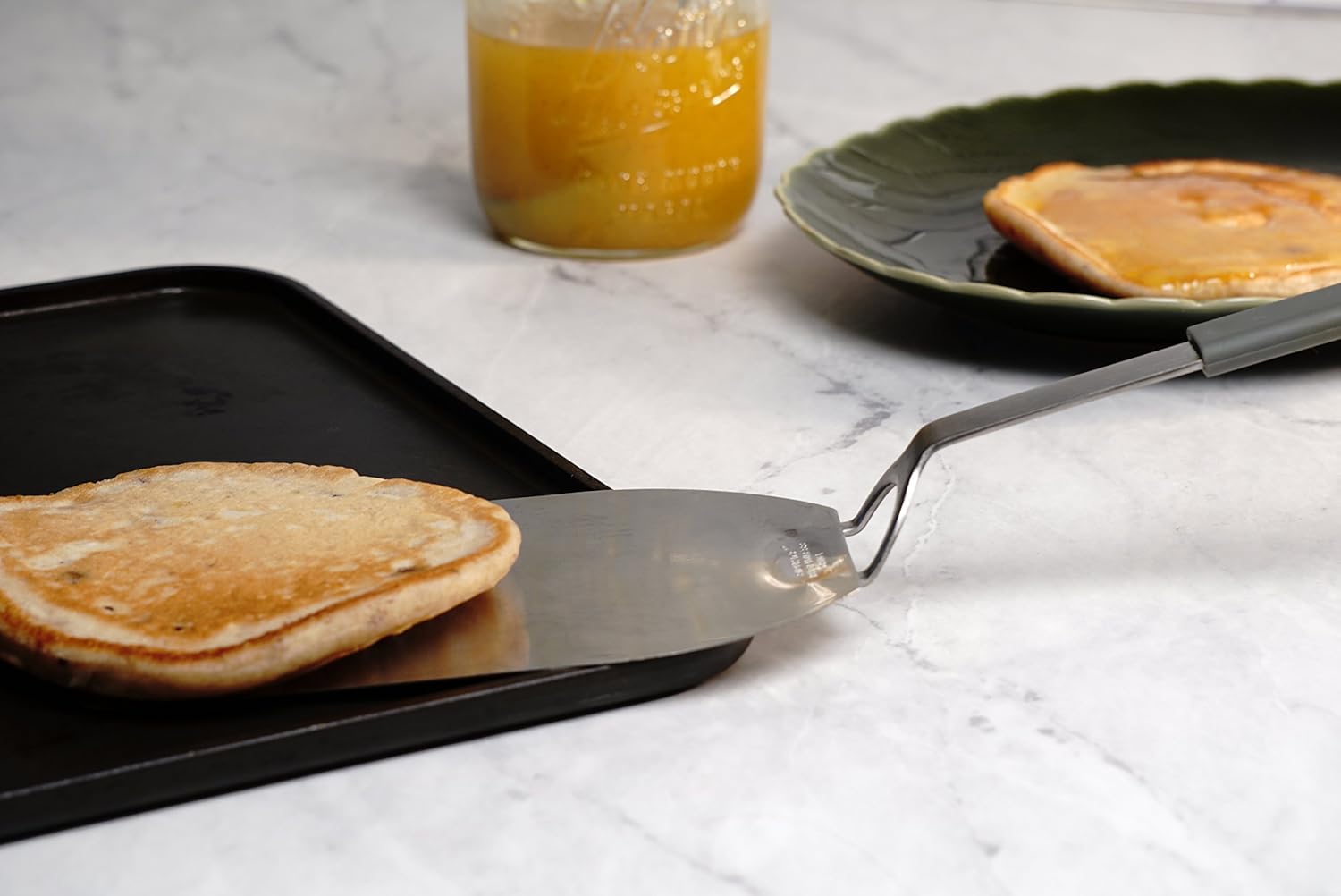 - EASY TO USE: Easy grip nylon spatula while cooking with flat flipping surface perfect for flipping food
