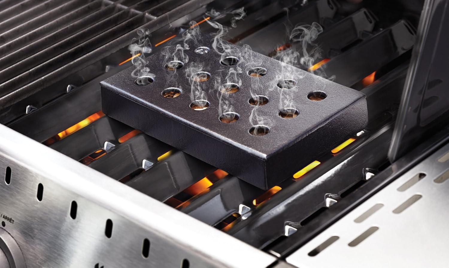Outset Q177 Smoker Gas Grill, 5.25" x 8.25" x 1.25", Wood Chip Smoking Box: Cast Iron