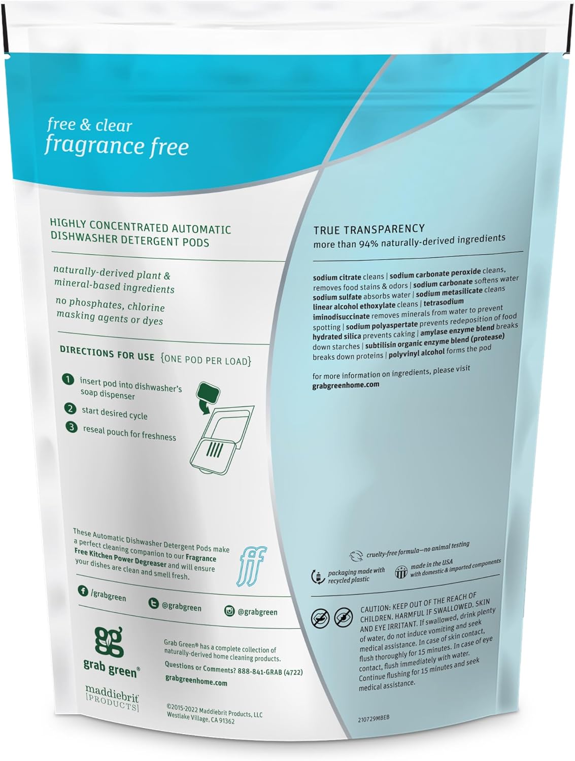 Grab Green Automatic Dishwashing Detergent Pods, 24 Count, Fragrance Free, Plant and Mineral Based, Superior Cleaning, Powerful Grease Removal, Brilliant Shine, Packaging May Vary