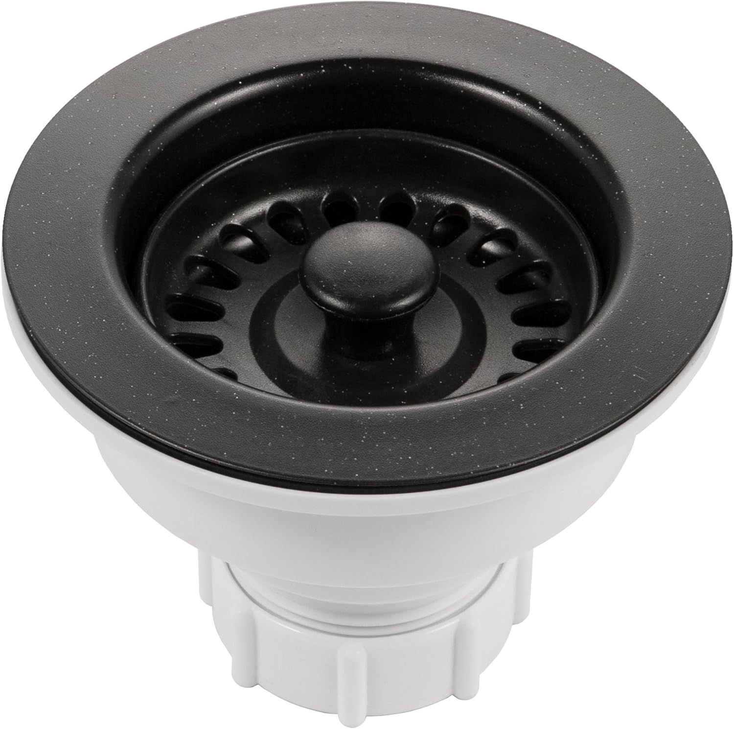 Houzer 190-9268 - 3-1/2 Inch Granite Black Kitchen Sink Basket Strainer, Durable Food Catcher Stopper for Metal Kitchen Sink, Ideal for Filtering Waste and Preventing Clogs