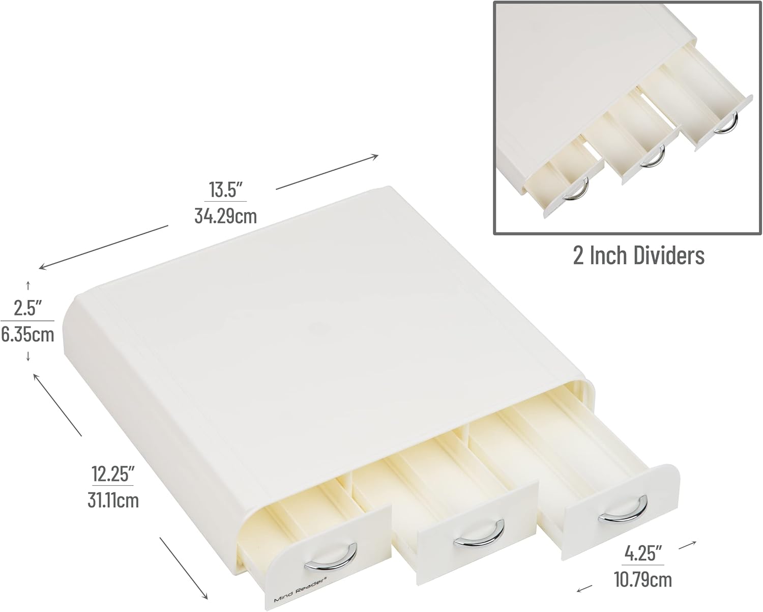 Mind Reader Single Serve Coffee Pod Organizer with 3 Drawers, 36 Pod Capacity, Countertop , 12.25"L x 13.5"W x 2.5"H, White
