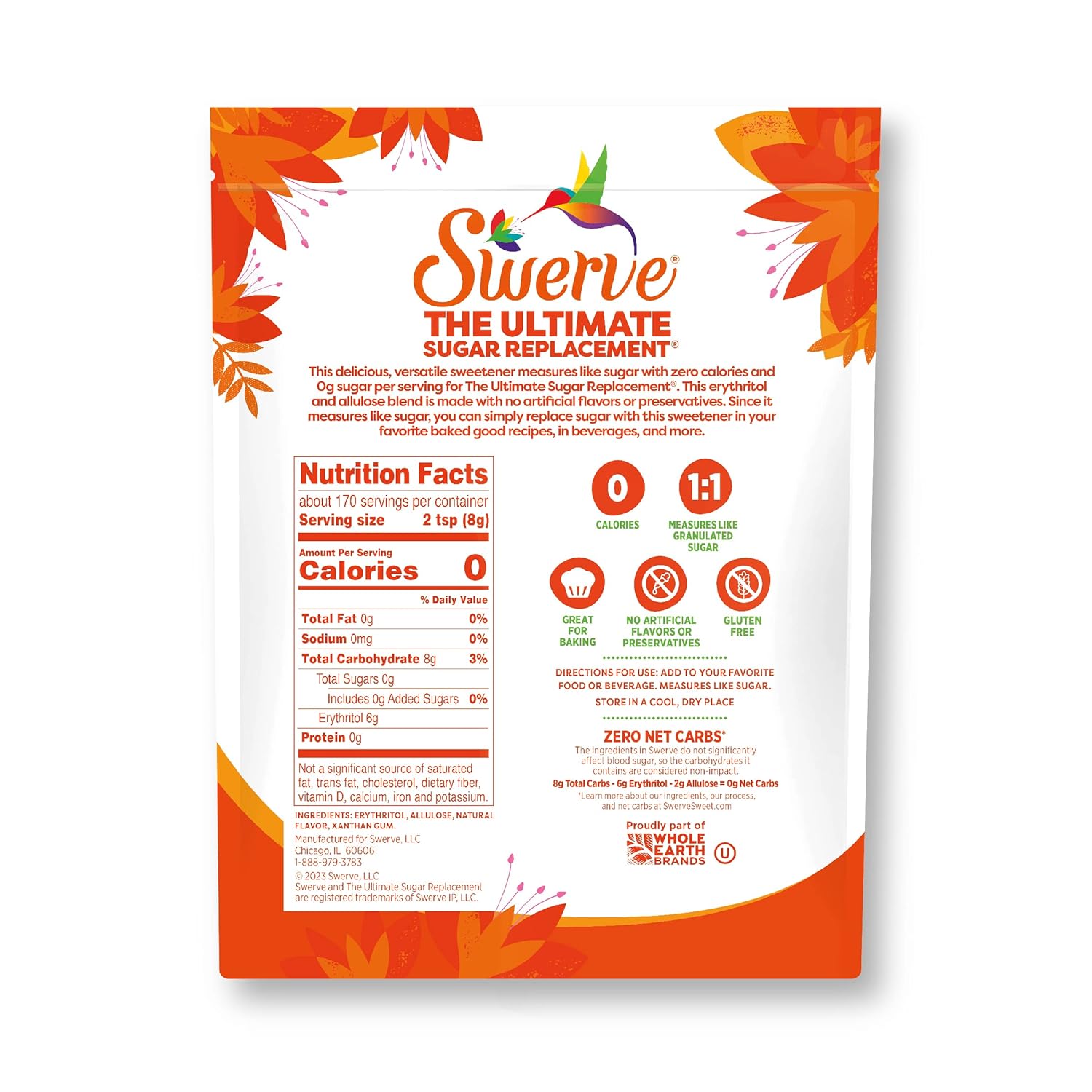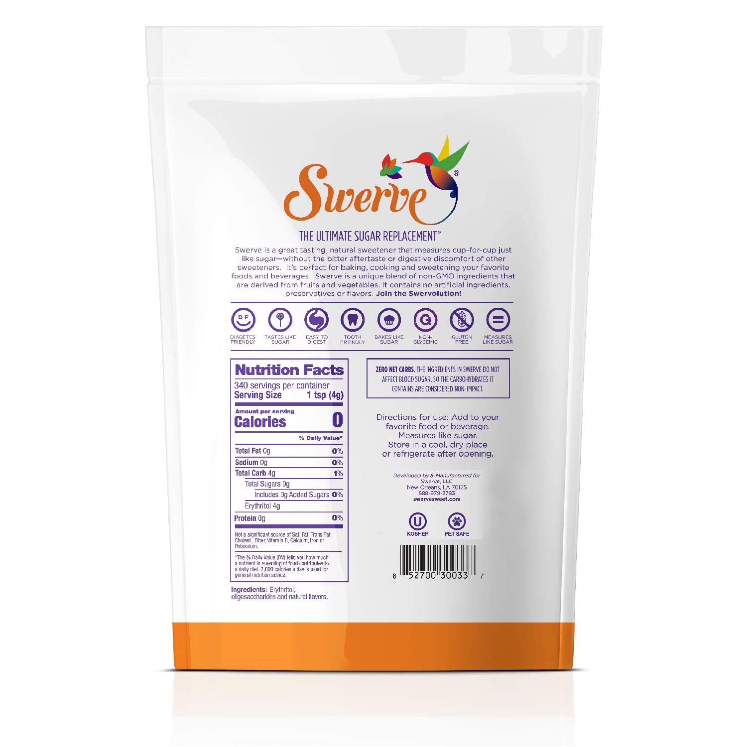 Swerve Ultimate Sugar Replacement Sweetener, Granular Sugar Substitute, Zero Calorie, Keto Friendly, Zero Sugar, Non-Glycemic, Gluten Free, 48 ounces