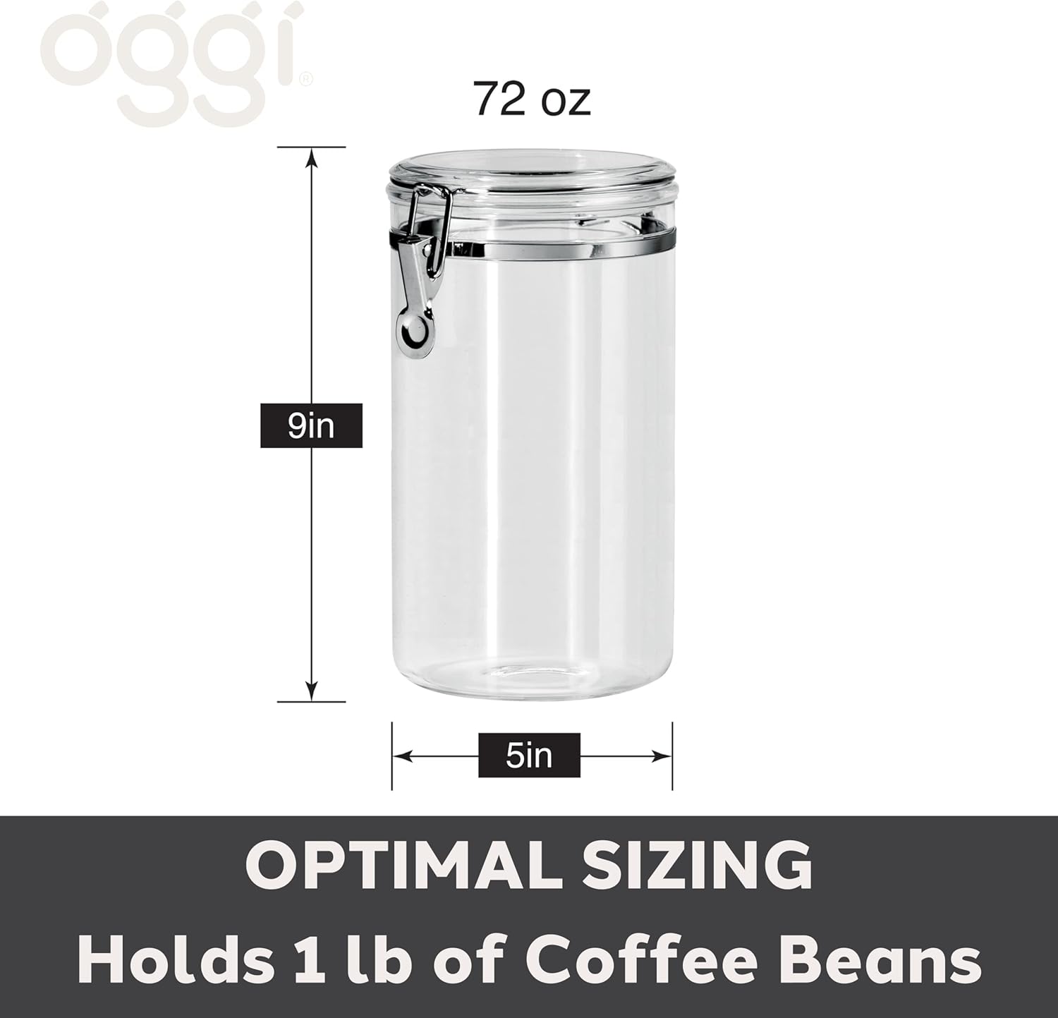 Oggi Large Clear Canister with Clamp Lid, 72 oz - Large Airtight Food Storage Container, for Kitchen & Pantry Storage of Bulk, Dry Foods, Pasta, Flour, Sugar, Coffee, Rice, Tea, Spices & Herbs
