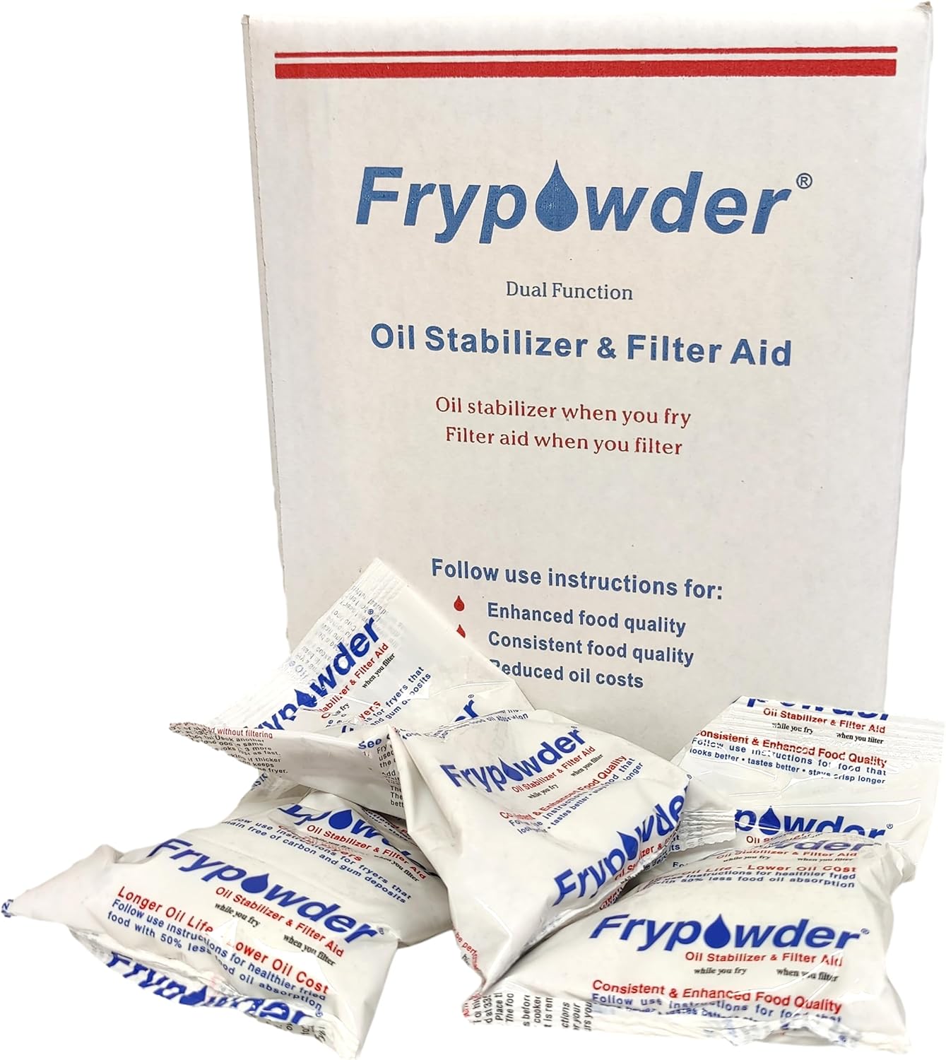 - ENJOY ENHANCED FLAVOR, IMPROVED APPEARANCE, AND FASTER COOKING TIMES - Proven for over 20 years to be safe in fryers and filters. Add FryPowder to hot oil before each 6 to 8-hour frying session. With FryPowder, your cooking oil is always good, never smokes, never foams, and you avoid gum and carbon deposits. FryPowder acts as an oil stabilizer and filter aid