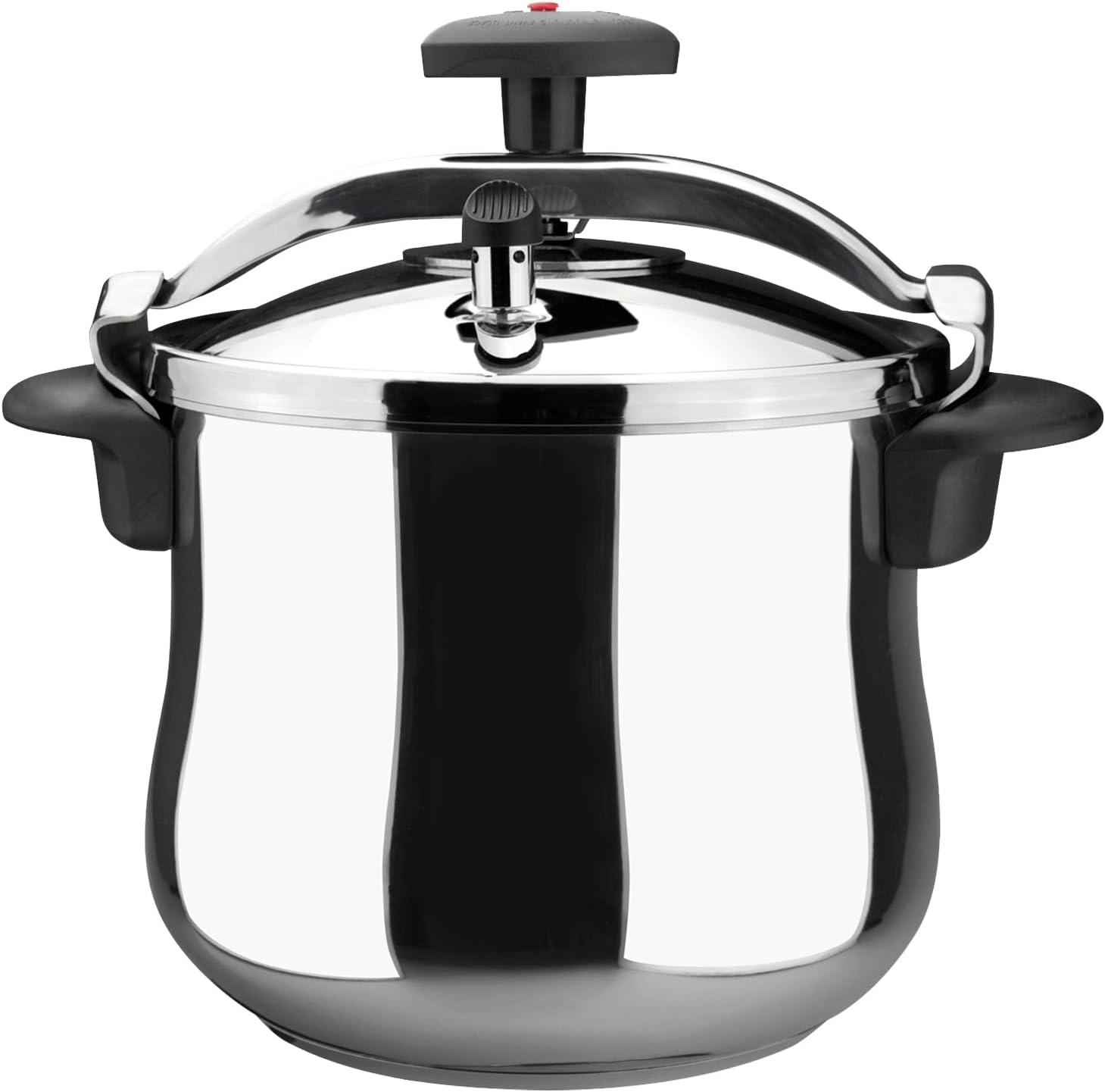 MAGEFESA Star Belly Pressure Cooker 10.6 Qt – 18/10 Stainless Steel, Rounded Bottom, 3 Safety Systems, Works on All Stovetops Including Induction, 8 PSI