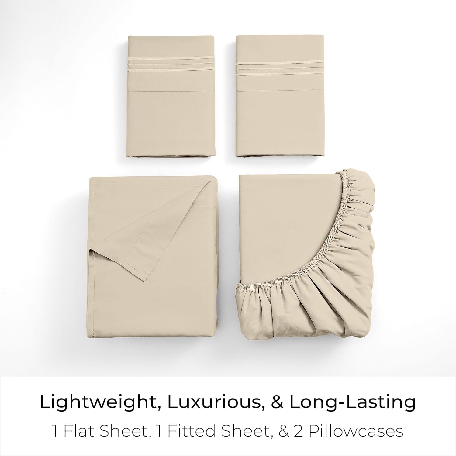 Mellanni King Sheets Set - 4 PC Iconic Collection Bedding - Hotel Luxury, Extra Soft, Cooling Bed Sheets - Wrinkle, Fade, Stain Resistant (King, Beige)