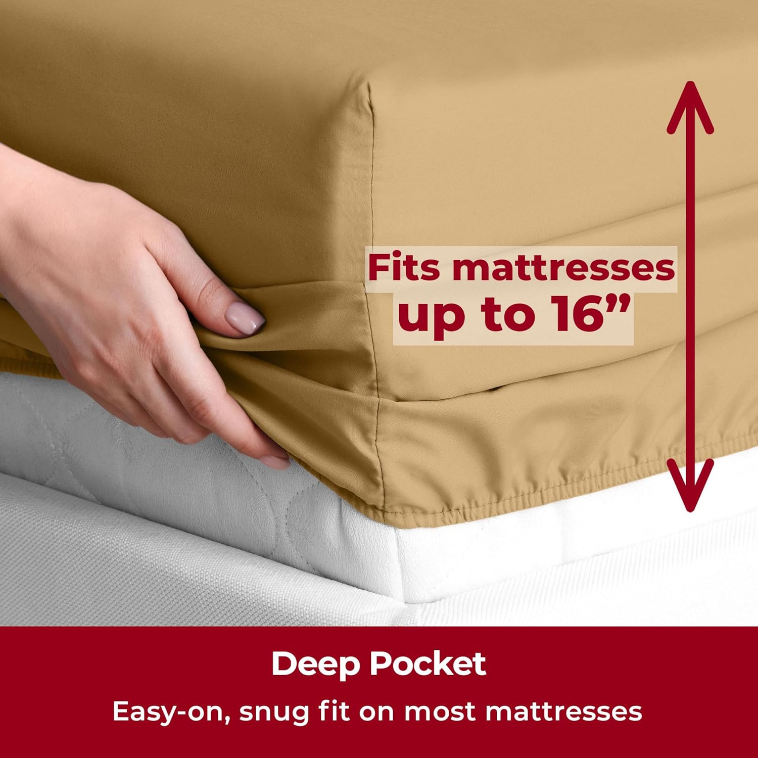 Mellanni Twin Sheets Set - 3 PC Iconic Collection Bedding - Hotel Luxury, Extra Soft, Cooling Bed Sheets - Wrinkle, Fade, Stain Resistant (Twin, Gold)