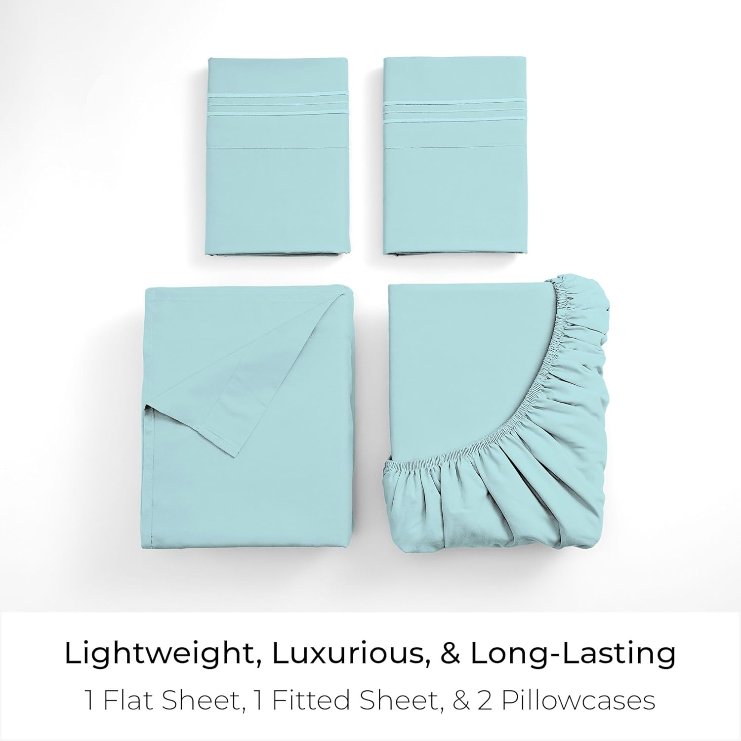 Mellanni Full Sheets Set - 4 PC Iconic Collection Bedding - Hotel Luxury, Extra Soft, Cooling Bed Sheets - Wrinkle, Fade, Stain Resistant (Full, Aqua)