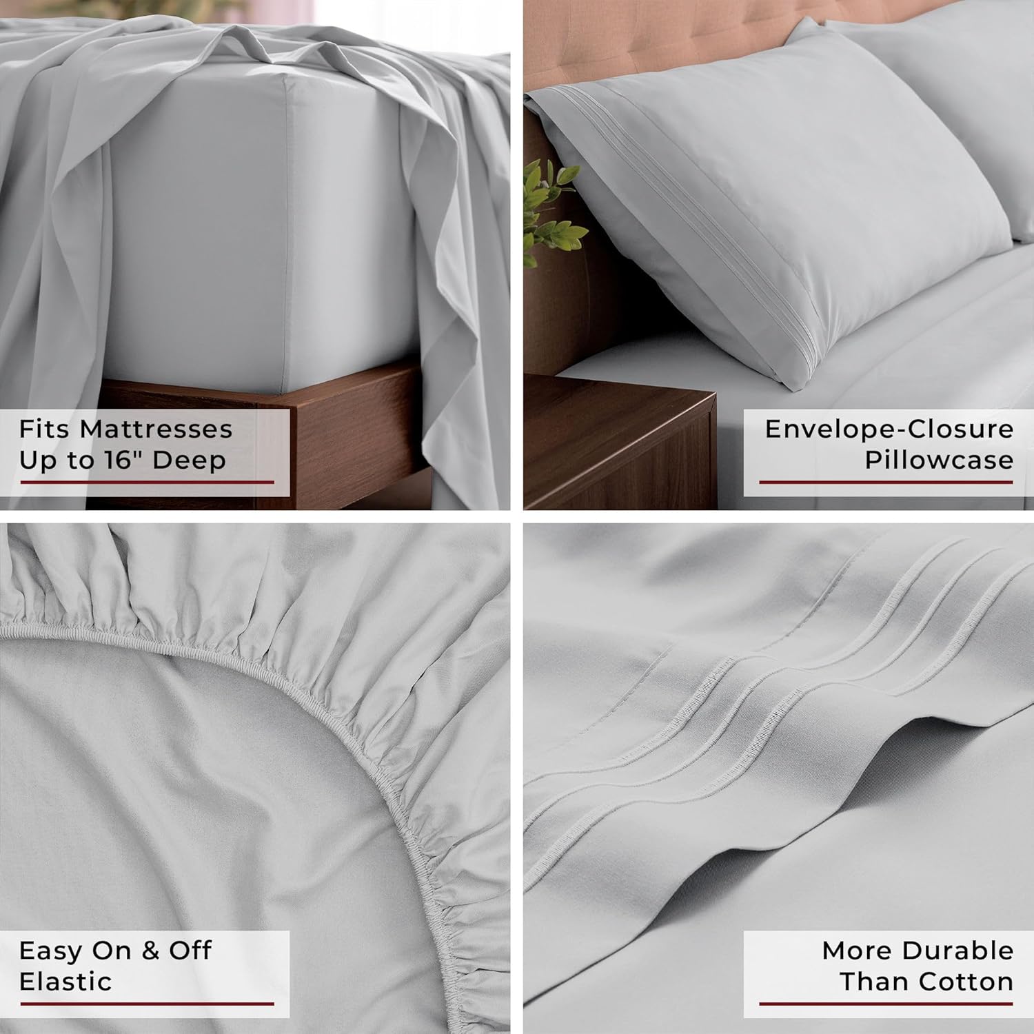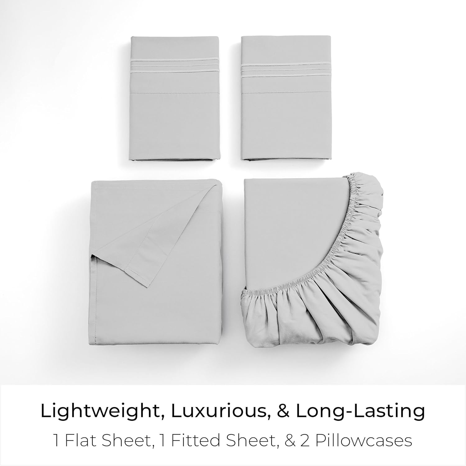 Mellanni California King Sheets Set - 4 PC Iconic Collection Bedding - Hotel Luxury, Extra Soft, Cooling Bed Sheets - Wrinkle, Fade, Stain Resistant (Cal King, Light Gray)
