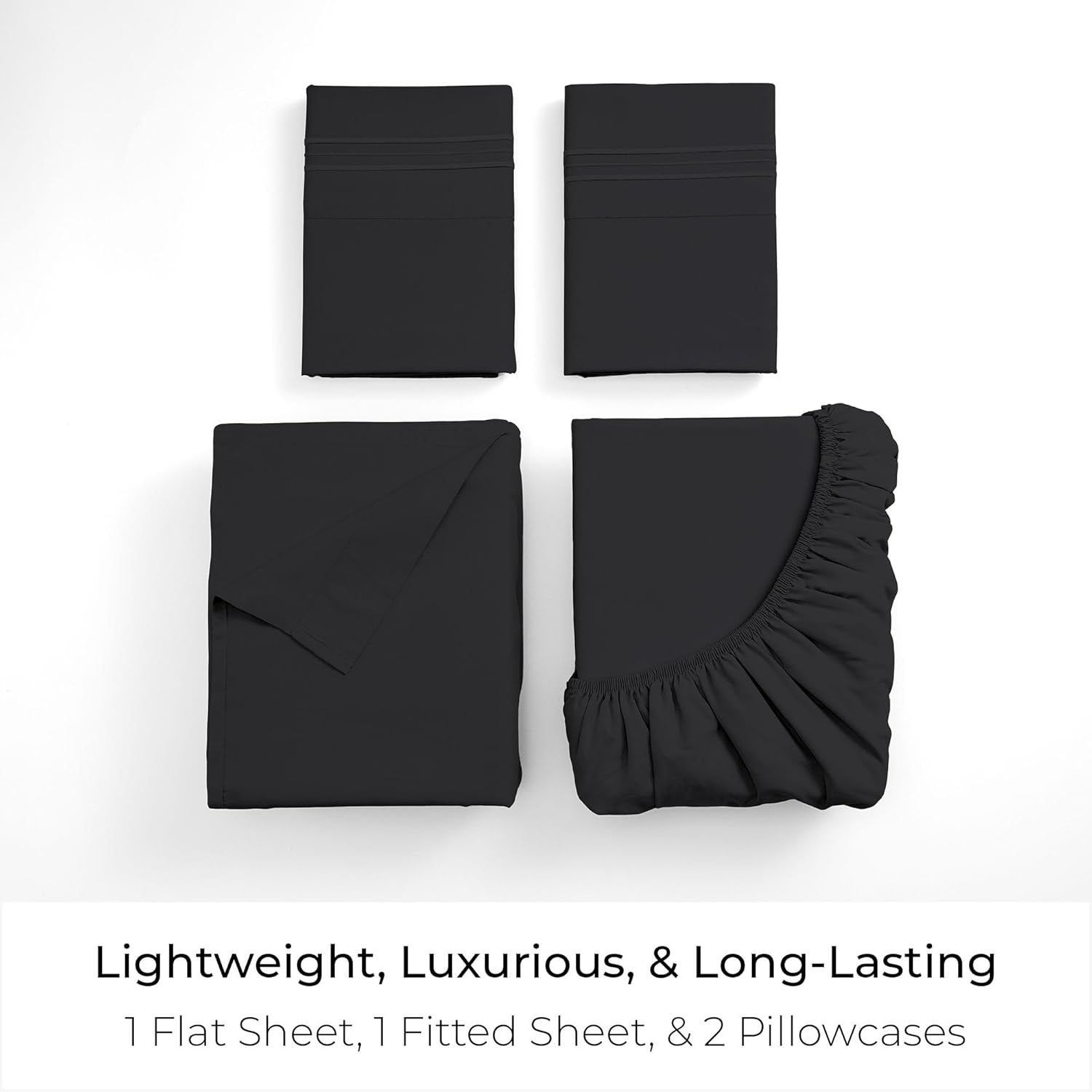 Mellanni Full Sheets Set - 4 PC Iconic Collection Bedding - Hotel Luxury, Extra Soft, Cooling Bed Sheets - Wrinkle, Fade, Stain Resistant (Full, Black)