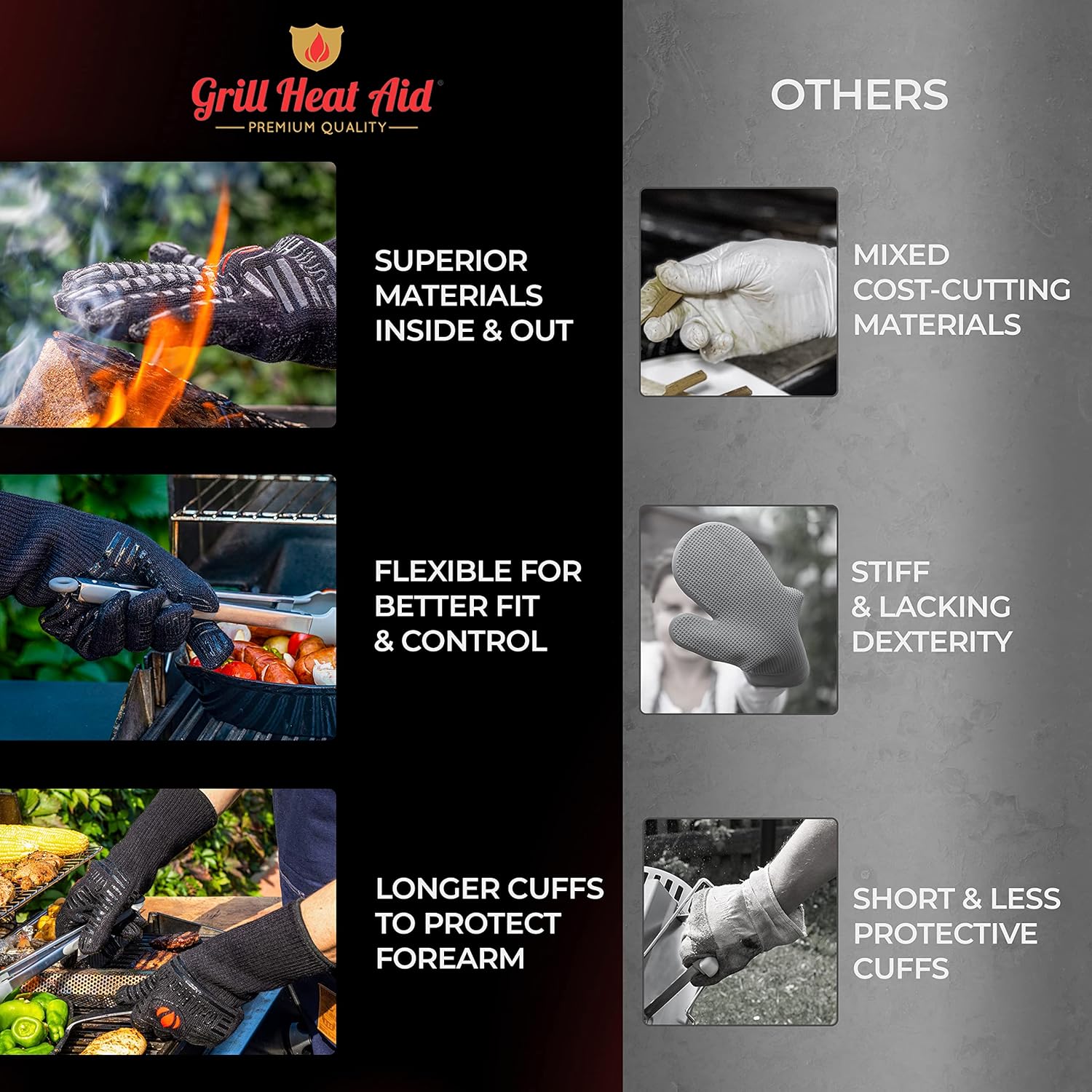 GRILL HEAT AID BBQ Grill Gloves Heat Proof for Grilling – Fireproof 1472°F Heat-Resistant Grill Mitts for Outdoor Barbecue and Smoker, Campfire, Fire Pit, Oven Glove with Fingers for Baking Pizza