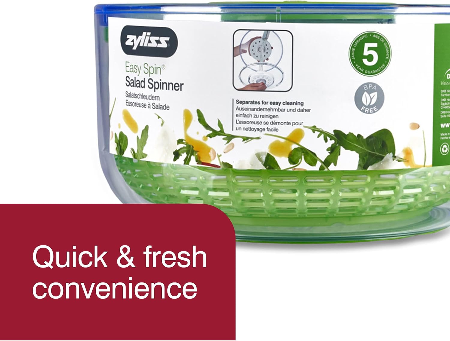 ZYLISS Easy Spin Salad Spinner, Large, Green, BPA Free