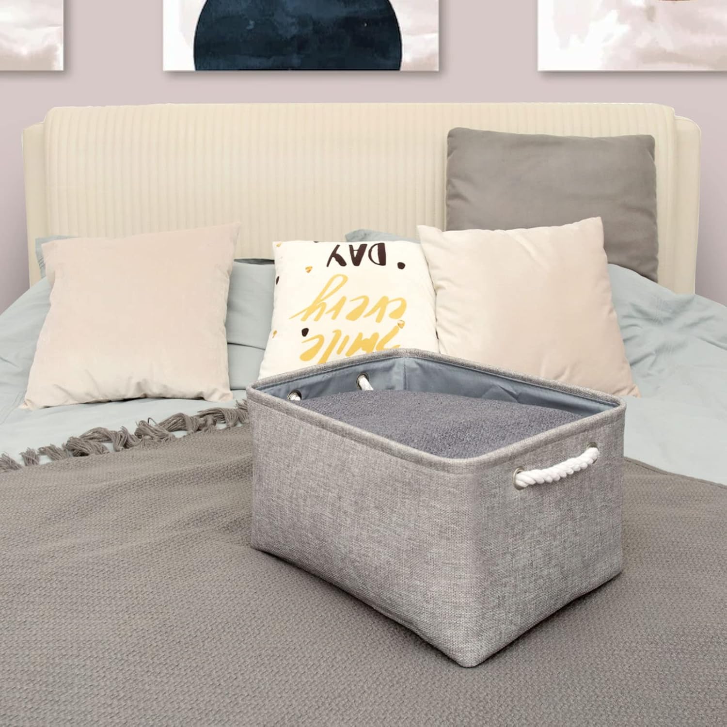- LARGE STORAGE BIN & PROFESSIONALLY & PRACTICAL - 15.7L×11.8W×8.3H, can be used as storage baskets for shelves,closet storage bins, linen closet organizer,nursery basket storage,laundry baskets, bathroom towel storage,also can organizing baby Stuff,clothing, kid’s toys,pet toy products, laundry, towel, bedsheet,sport gears,suitable use in bedroom, living room,study room,rest room,bathroom, kitchen,office,shelf,closet and cabinets. excellent choice for keeping your space nice,tidy and organized