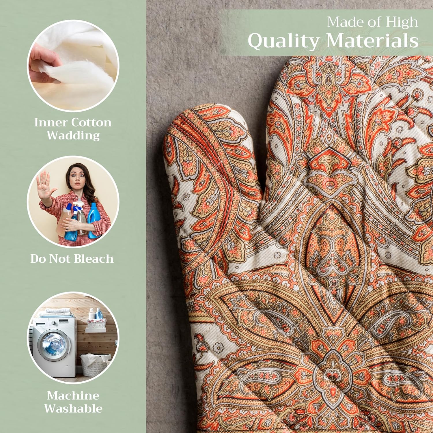 Maison d' Hermine Oven Gloves 100% Cotton Oven Mitt 7" x 13" with Loop Heat Resistant, BBQ, Cooking Gloves, Baking, Grilling, Kitchen, Handling Hot Pans (Pack of 1, Kashmir Paisley)