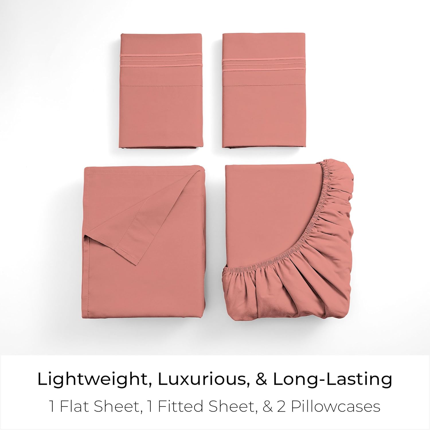 Mellanni Full Sheets Set - 4 PC Iconic Collection Bedding - Hotel Luxury, Extra Soft, Cooling Bed Sheets - Wrinkle, Fade, Stain Resistant (Full, Coral)