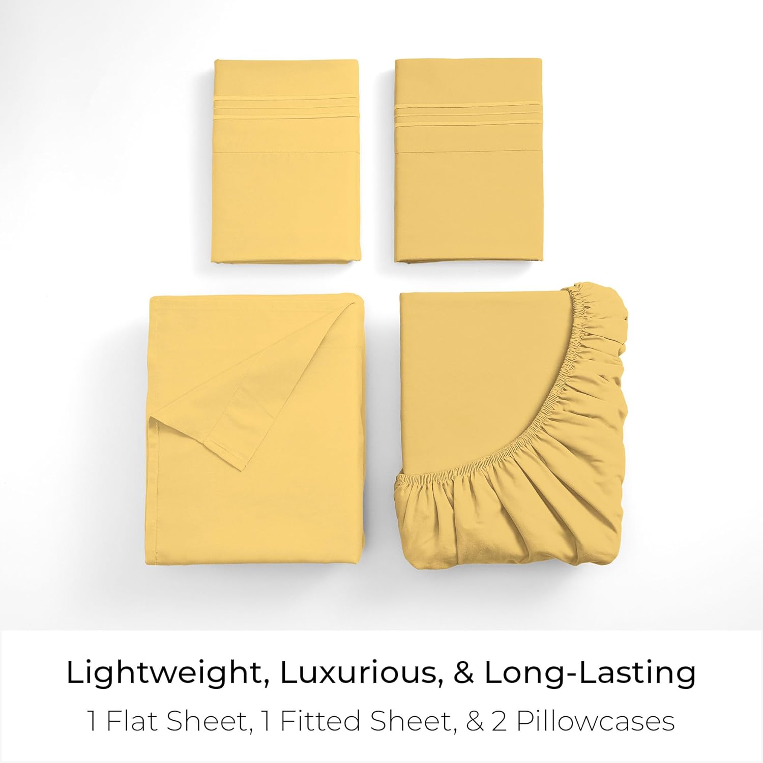 Mellanni California King Sheets Set - 4 PC Iconic Collection Bedding - Hotel Luxury, Extra Soft, Cooling Bed Sheets - Wrinkle, Fade, Stain Resistant (Cal King, Yellow)