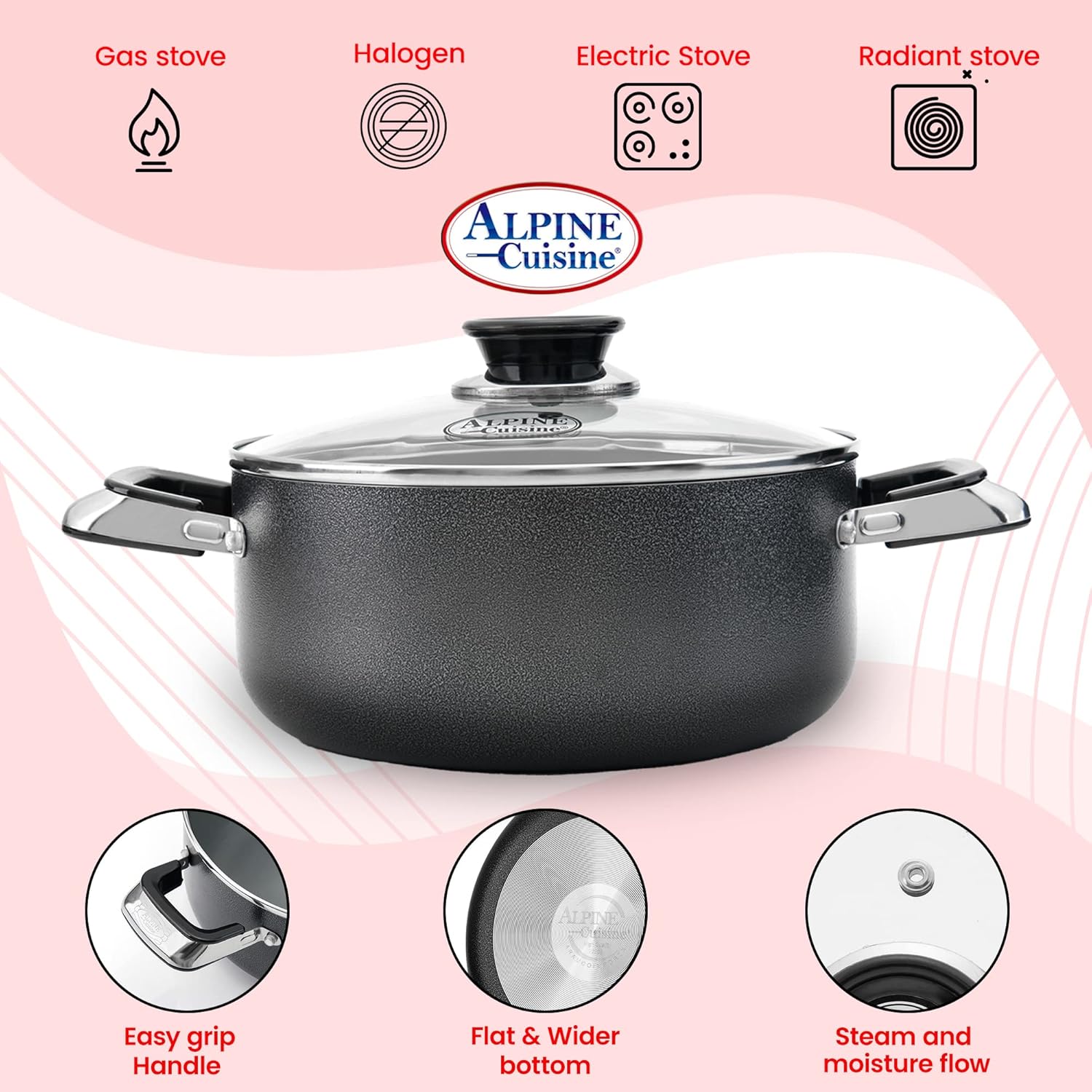 - CARRYING HANDLES: Cool-Touch Carrying Handles Are Safe to Use When Moving Food Off the Cooktop, and the Sturdy Carrying Handles Make It Simple and Secure to Move the Pot from One Burner to Another, Across the Kitchen, or Out of the dutchoven. The Glass Lid Allows You to Monitor Your Foods While cooking pots and the Handles Make It Easy to Transport During and After Cooking.