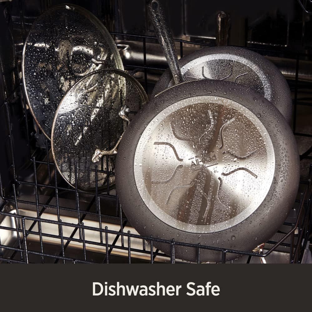 - Oven safe up to 500°F and compatible with any stovetop, including induction Glass lids are oven safe up to 350°F Dishwasher safe To preserve the nonstick, wash your cookware with a soap and sponge, and using silicone, nylon or wooden utensils