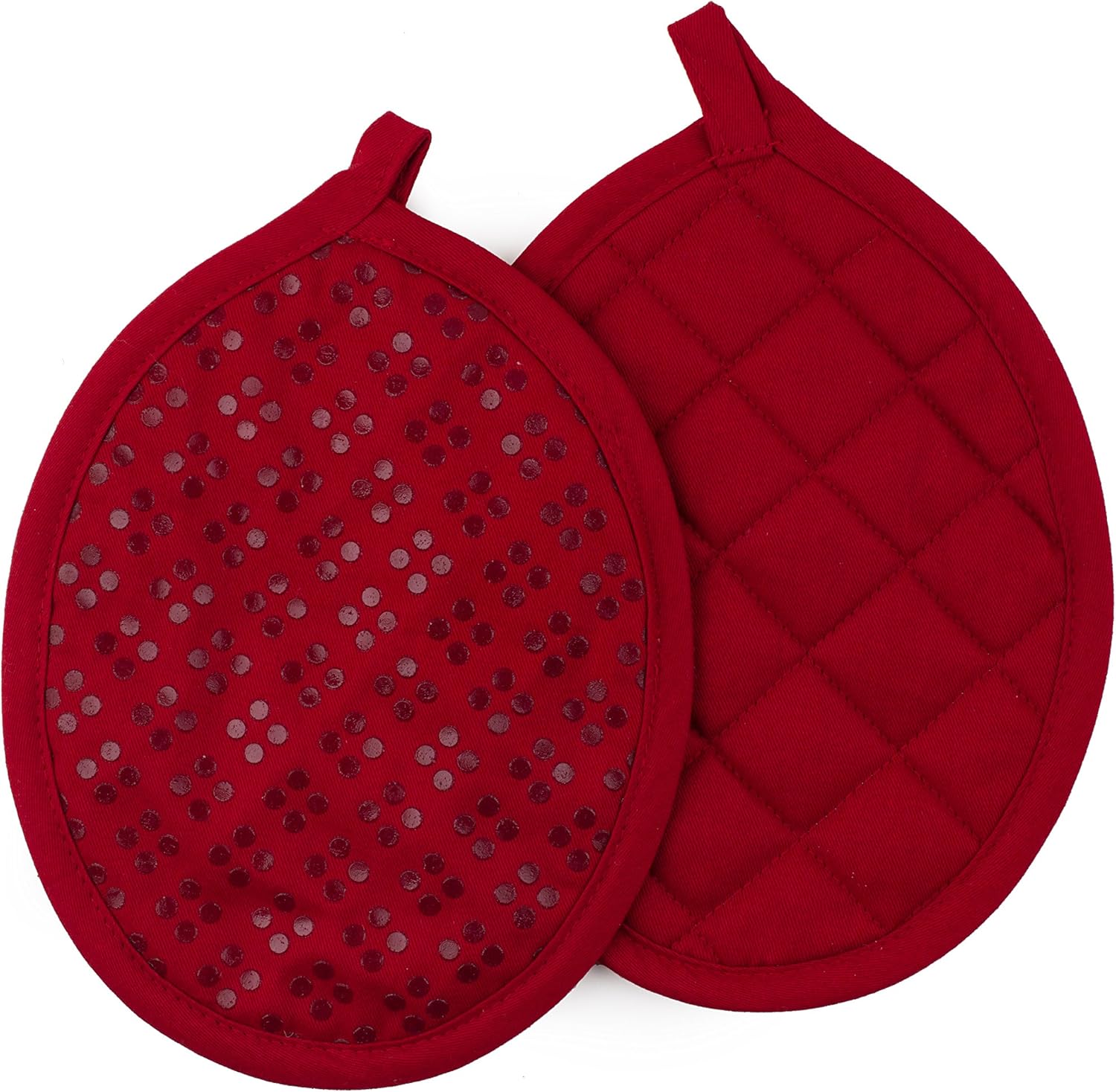 - NON-SLIP GRIP & HANGING LOOP: The printed silicone design on the oven mitt and hot pads provides a secure non-slip grip while handling pots and pans. It is rated to withstand up to 500 degrees Fahrenheit for your safety and ease of use. The oven mitt and pot holders are perfectly designed with a loop for easy hanging.