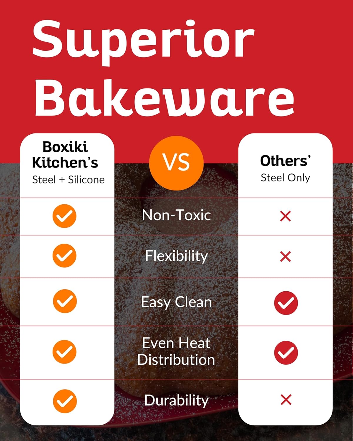 Boxiki Kitchen Premium Non-Stick Silicone Pound Cake Pan – Heavy-Duty Steel Frame, BPA & PFOA Free – Durable Fluted Cake Pan, Moldes para Gelatinas, Pasteles, Flan – No Warping, No Shape Loss