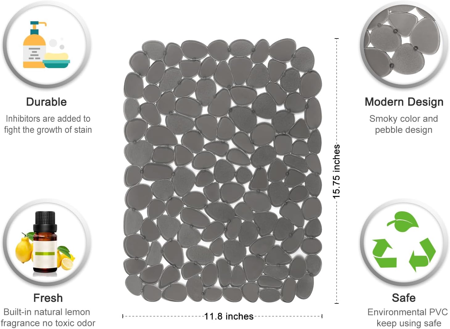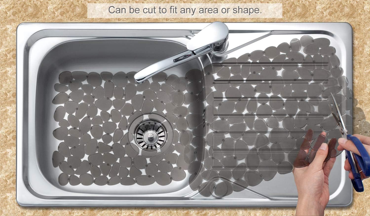 - Modern Design and Practical Functions: Unique pebble design, this sink mat is made of heavy, flexible PVC material, it can stay put at the sink bottom to protect sink surface from scratches and provide cushion to dishes while washing.