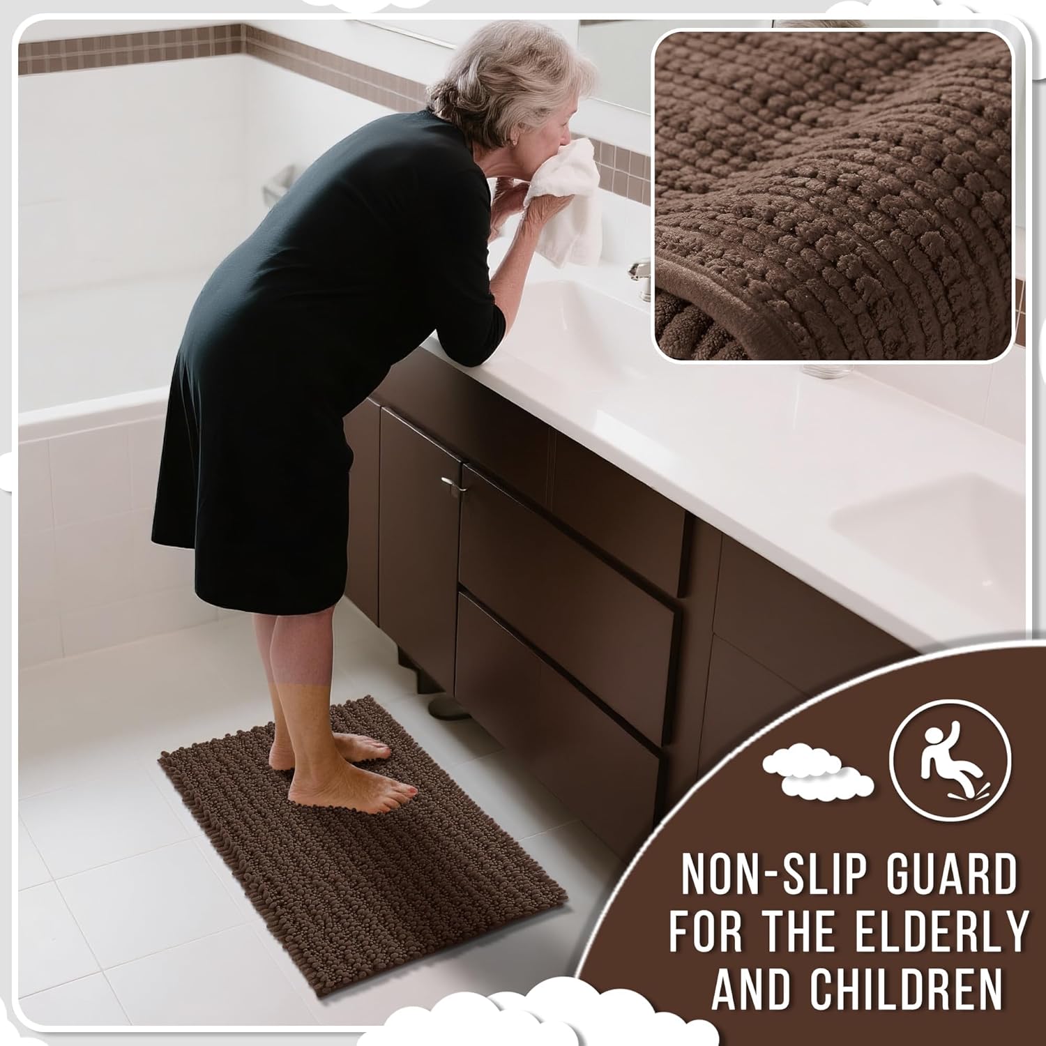 Yimobra Bathroom Rugs Non Slip Washable 32x20 Inch - Ultra Soft Absorbent Chenille Bath Mat, Quick Dry Shaggy Floor Carpet for Tub Shower, Brown Home Decor Accessories