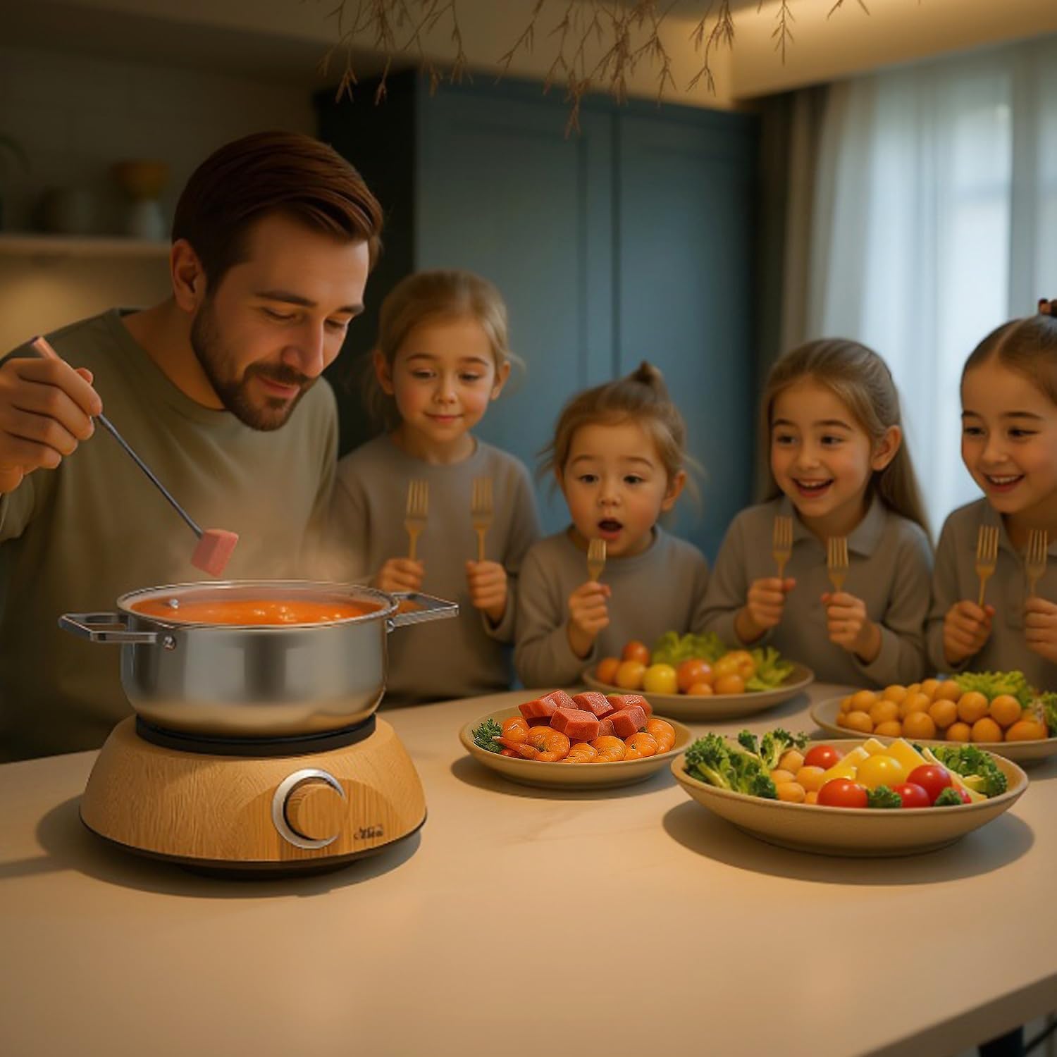 - POWERFUL 1500W QUICK-HEATING SYSTEM - Experience 30% faster melt times vs conventional pots with commercial-grade heating technology. Precisely adjustable temperature ensures perfect consistency for chocolate, cheese, broth, or oil fondues