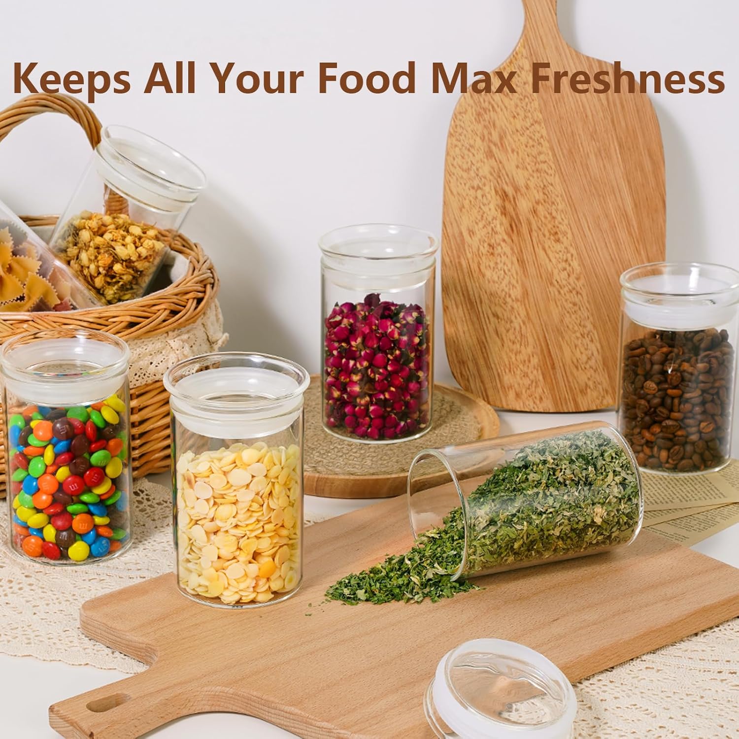- STYLISH, SIMPLICITY STORGE JARS: ZENS sleek glass canister with glass lids and it is well crafted by 100% hand-blown. you will find out the stuff through the clear lid easily when storing them in the drawer. It can be a mini food tray to serve your favorite snacks. The neat style is matching any kitchen style. Keeps your kitchen tidy never like before.