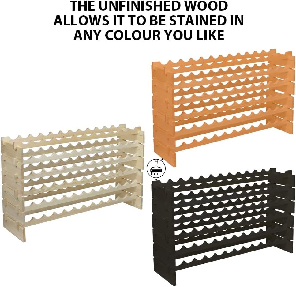 - ăSolid Pine Wood - Sturdy & Wobble-FreeăThis wine bottle holder is made of high quality knots free pine wood to ensure sturdy construction and compact capacity. The thickness of this hardwood is 0.71 inch, smooth and solid material to ensure your wines' safety for long time usage. Unfinished natural wood offers a variety options to stain, paint, varnish to match your furnishings or just leave as it is, 100% DIY and wobble-free guarantee