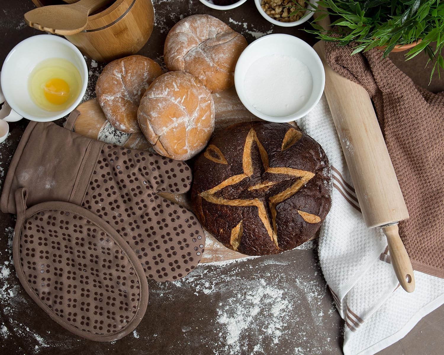 - GIFT: Decorated with charming, chic packaging, this 9 piece kitchen towel, oven mitt and pot holder set makes a great hostess, wedding, birthday, college, apartment essentials or housewarming gift.