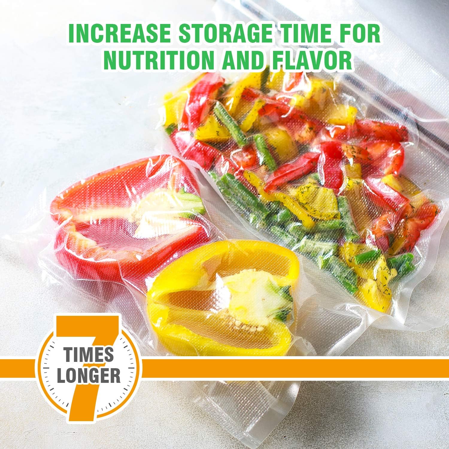- BETTER STORAGE: KOIOS vacuum storage bags rolls with 7 times longer food shelf life help to lock in flavor, nutrients, and freshness. Safe to be frozen or boiled, but can't be used in the microwave