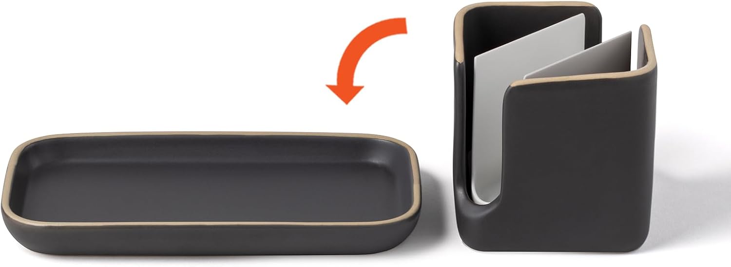 Full Circle Stash, Ceramic Kitchen Sink Caddy, Stylish Modular Sponge Holder & Dish Brush Organizer, Gray and White, 11"