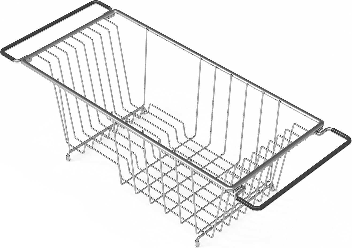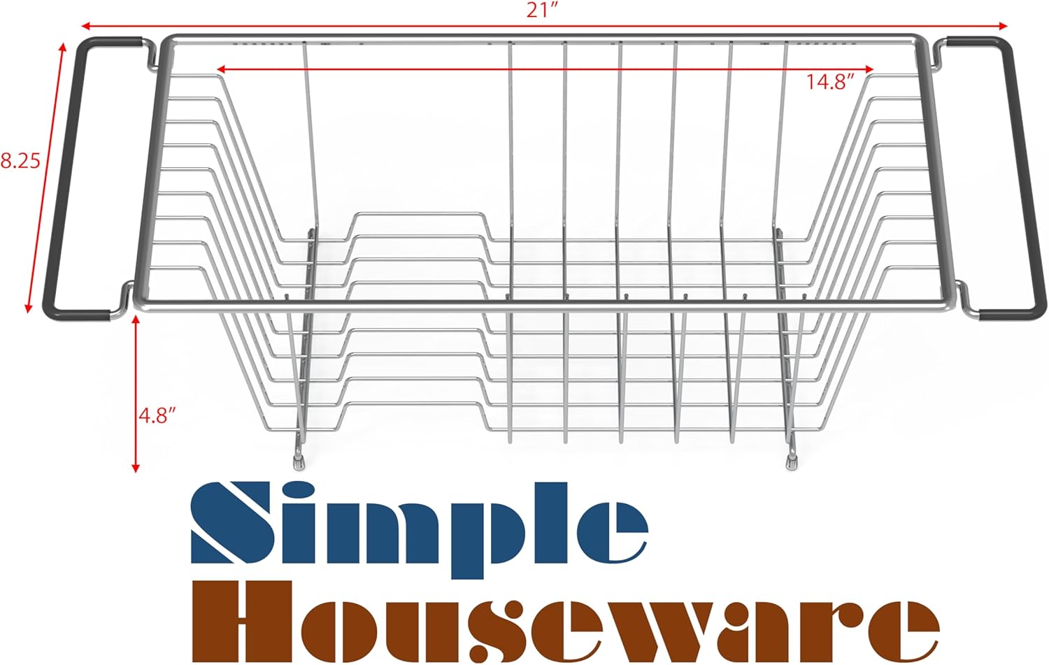 Simple Houseware Over Sink Counter Top Stainless Steel Dish Drainer Drying Rack, Chrome