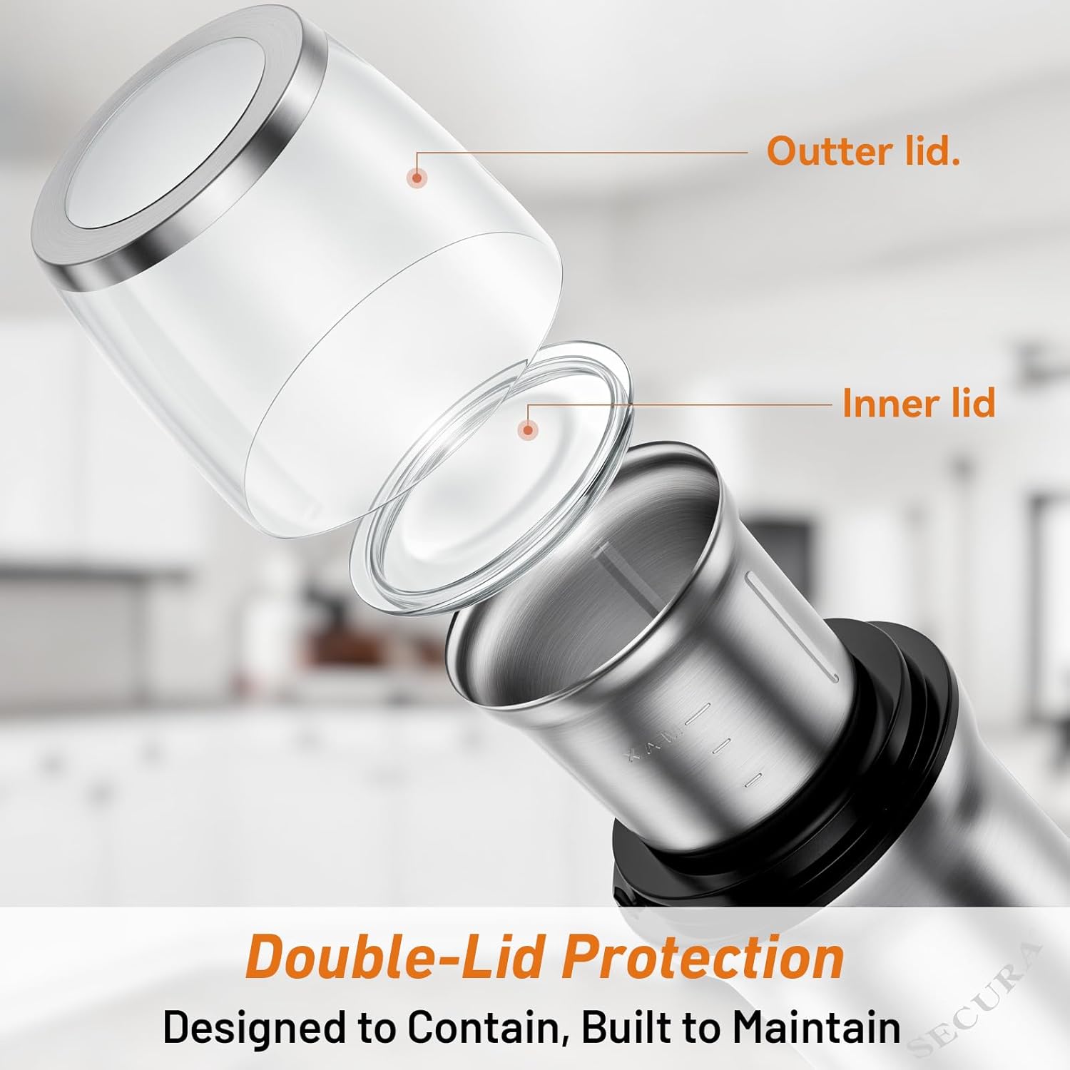 Secura Electric Coffee Grinder and Spice Grinder with 2 Stainless Steel Blades Removable Bowls