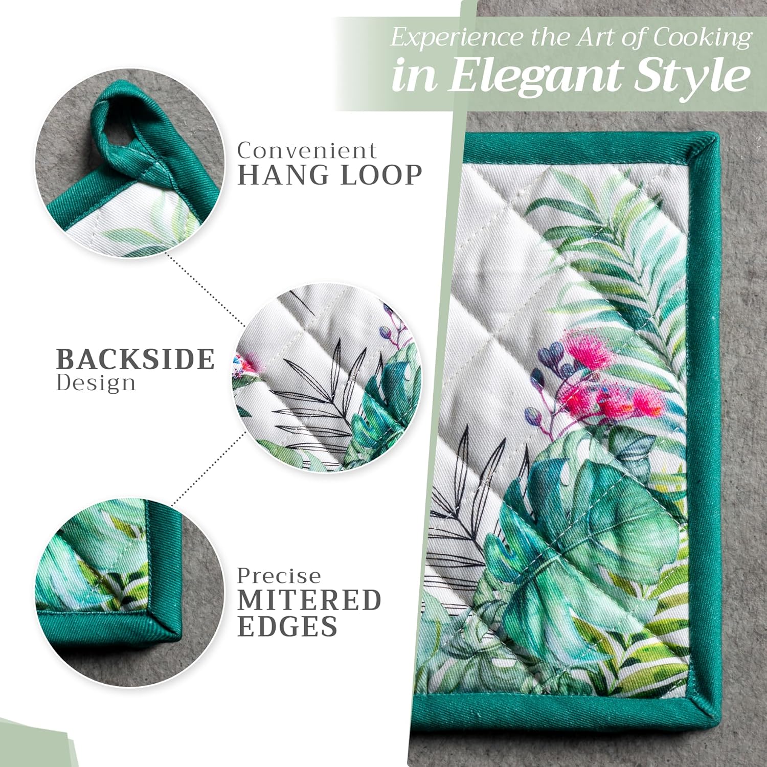 - 100% Quilted cotton: Made from premium quilted cotton, our pot holder ensures safe handling of hot pans or dishes. The soft, durable build provides excellent heat resistance and grip—perfect for everyday cooking and baking needs