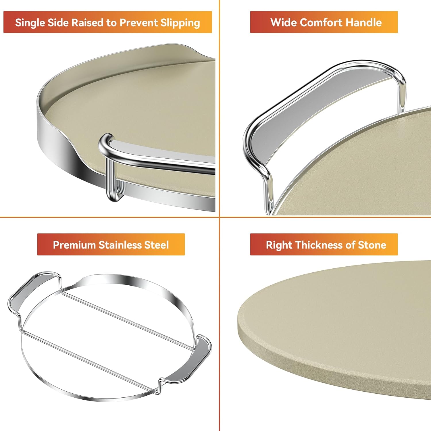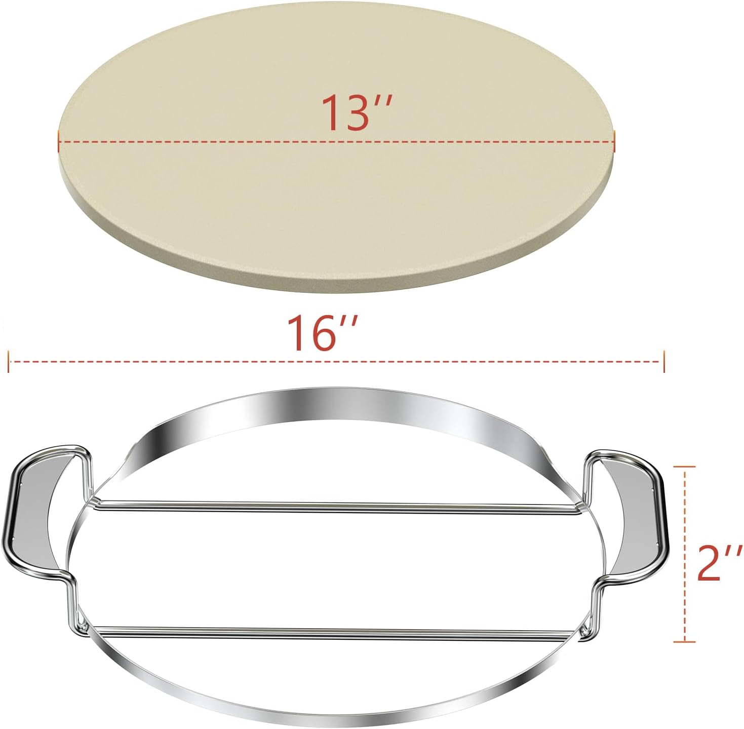 Skyflame Gourmet BBQ System Pizza Stone, 13-inch Baking Stone with Stainless Steel Carry Rack, Compatible With Weber 8836, Kettle Charcoal/Smoke/Gas/Ceramic Grills, Pizza Oven