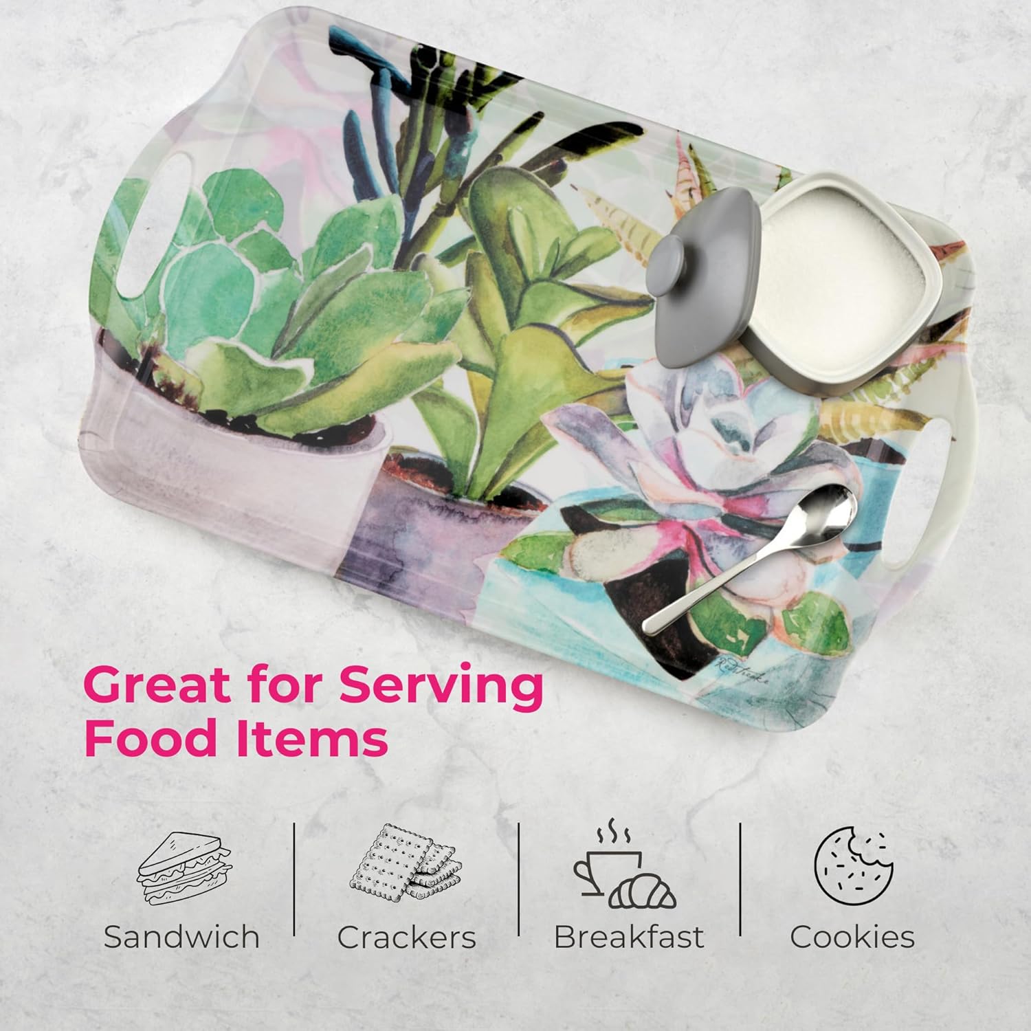 - Vibrant Botanical Design: Featuring a beautiful arrangement of green succulents, this decorative breakfast tray brings a fresh, modern aesthetic to any kitchen, dining area, or coffee station.