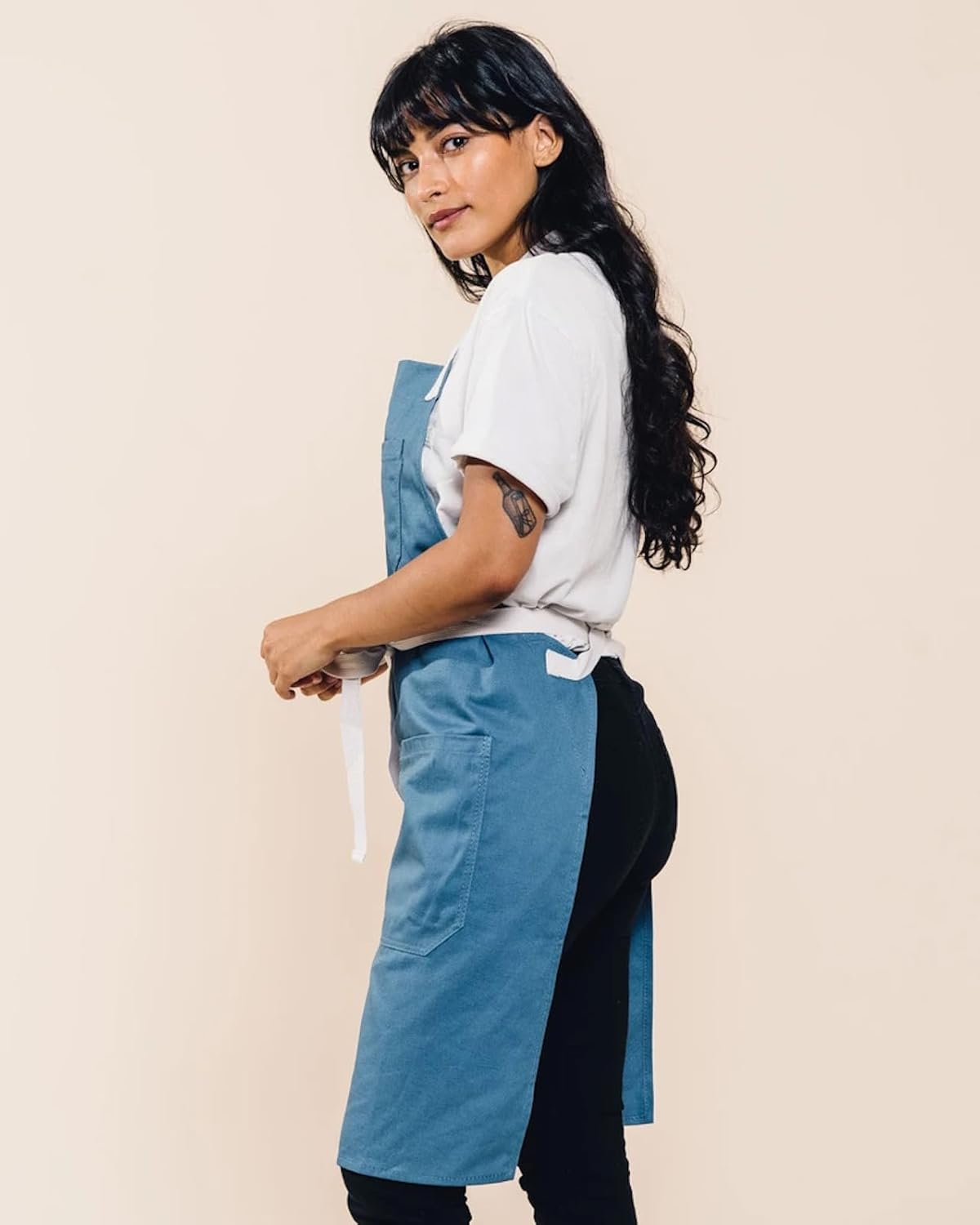 - STAY STAIN-FREE: Don't ruin your favorite clothes in the kitchen -- keep clean with this protective bib apron (that goes perfectly with your stylish knife set and kitchen towels).