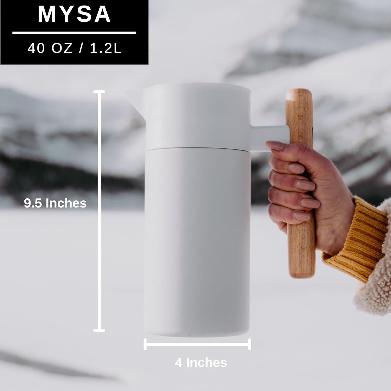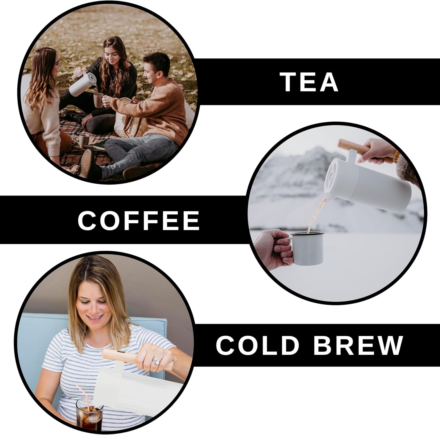 Hastings Collective Thermal Coffee Carafe 40 Oz - Stainless Steel Double Walled Vacuum Insulated Carafe - 1 Liter Thermal Coffee Pot Thermos, Travel Size Beverage Dispenser with Tea Infuser (White)