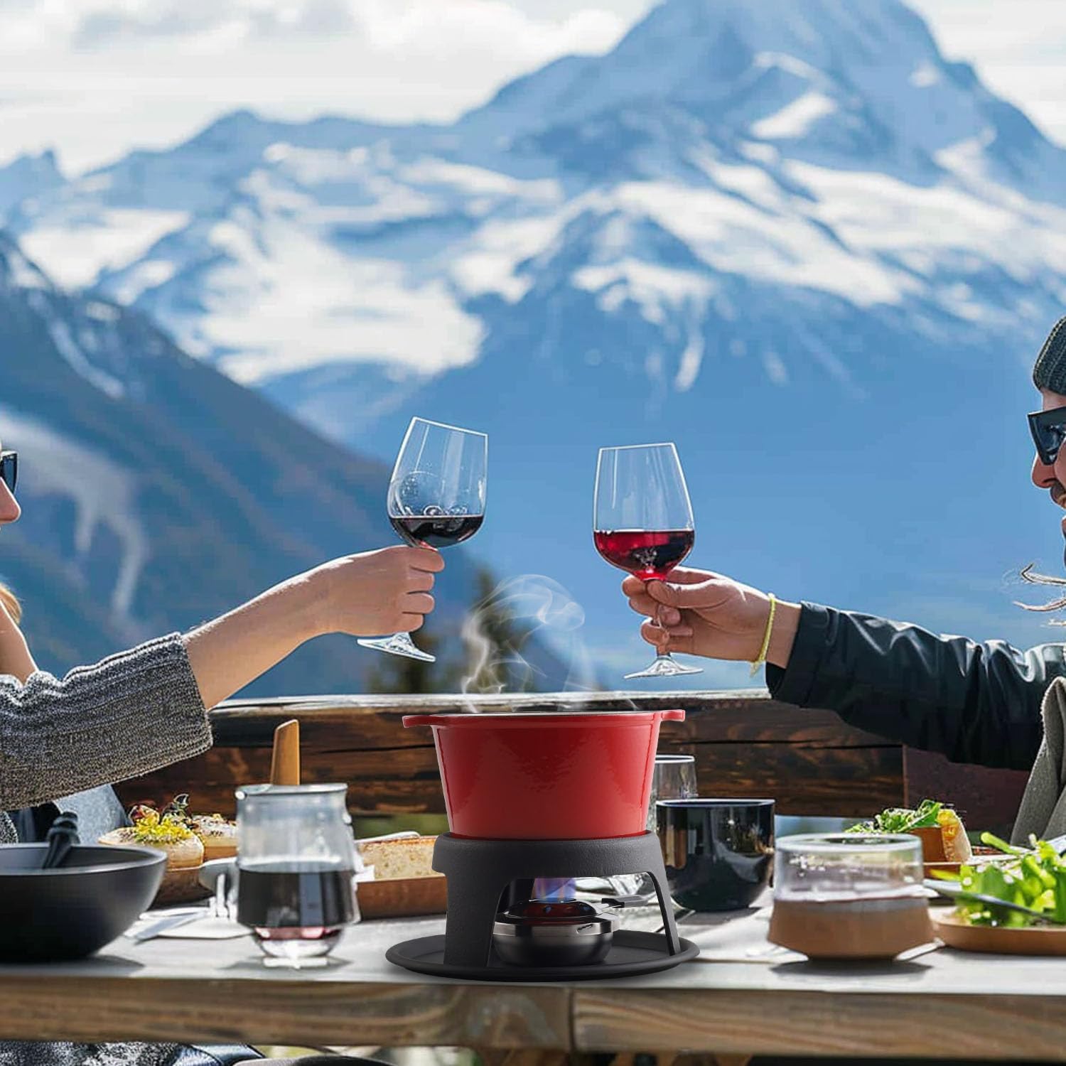 - CHEESE FONDUE - Artestia red cast iron fondue set brings back the old, authentic way of making luscious fondue – but made more conveniently! It features a super sleek and portable design that allows you to create an elegant centerpiece for your table setting - perfect for entertaining, dinner parties, and special occasions