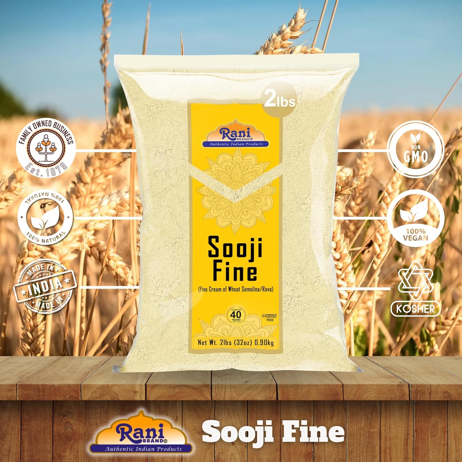 Rani Sooji Fine (Farina, Suji, Rava, Wheat) Flour 32oz (2lbs) 908g ~ All Natural | Vegan | NON-GMO | Kosher | Indian Origin