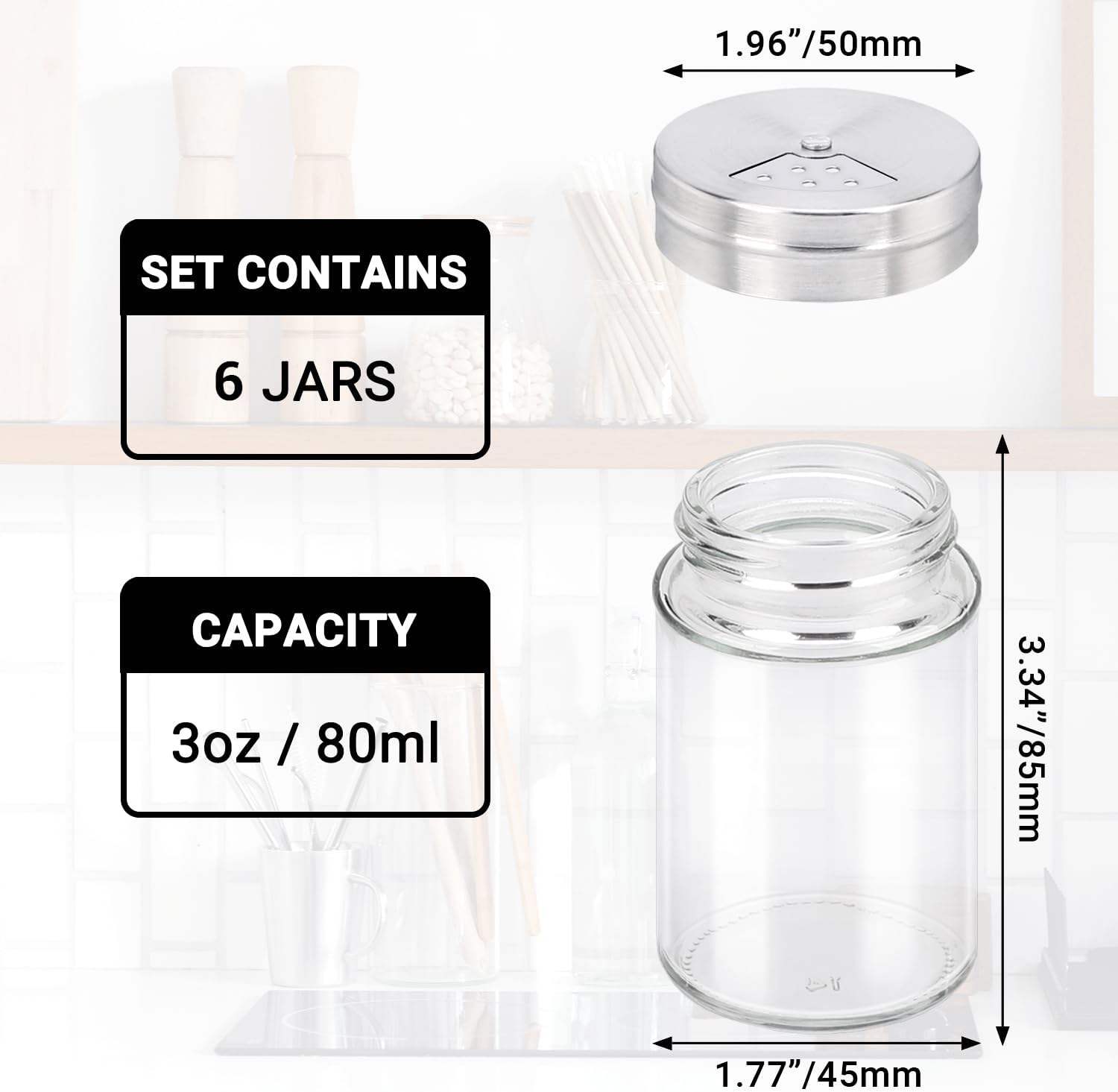 - High Quality Glass: Made of glass, the material is sufficient, the bottle is solid and long lasting, Lead-free glass bottle, moisture-proof and anti corrosion. The inside condiment is clear at a glance.