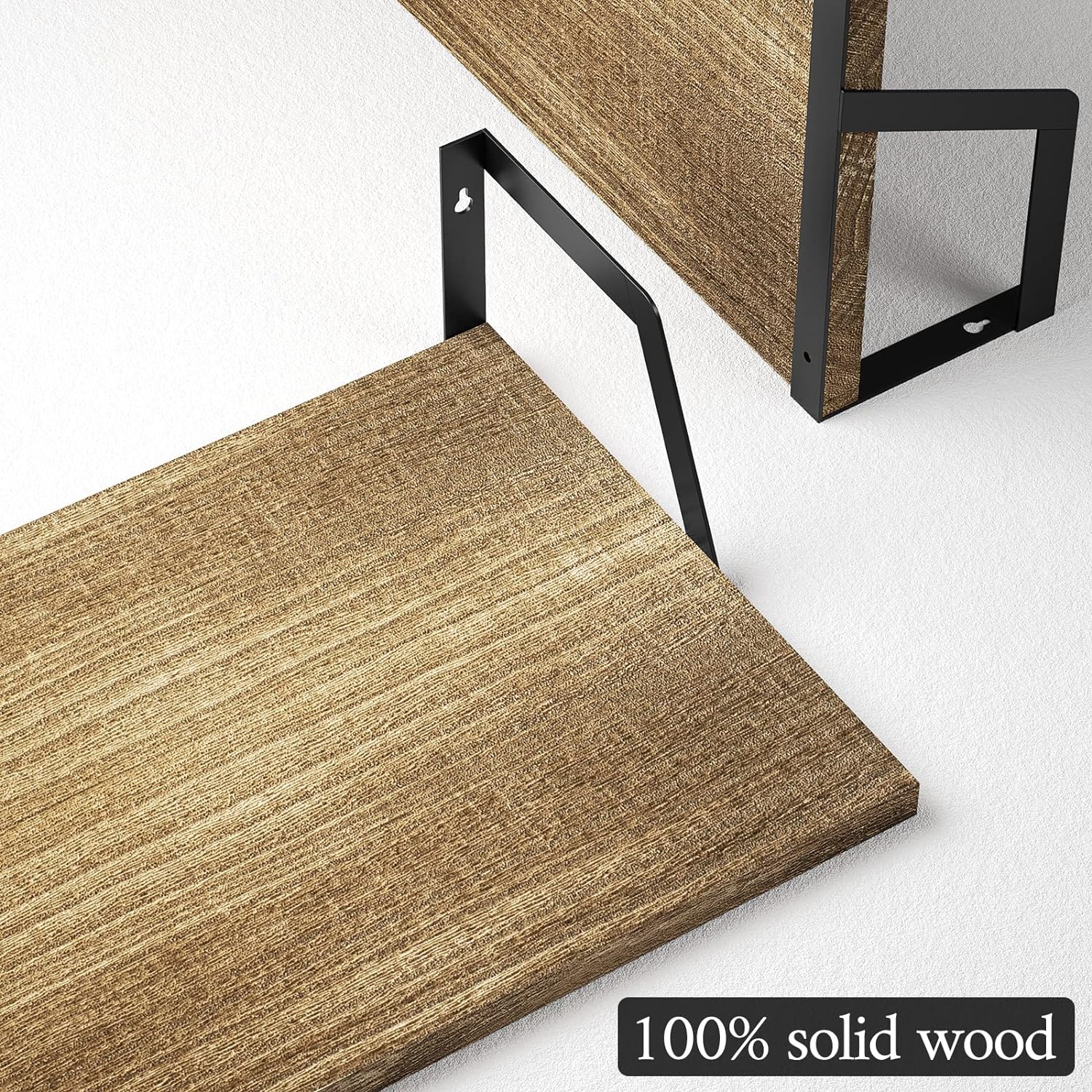 SRIWATANA Floating Shelves Wall Mounted Set of 2 Rustic Wood Shelves with Large Capacity(Carbonized Black)