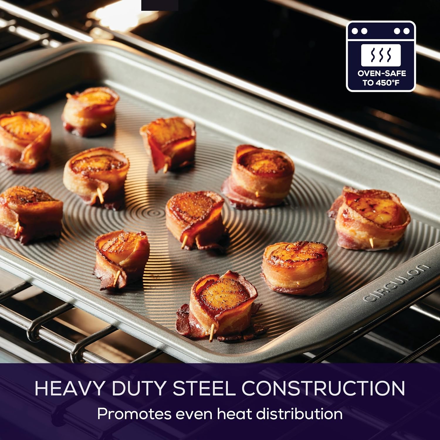 - EMBRACE THE HEAT: The cookie sheets are oven safe to 450°F; wide handles provide generous, confident grip