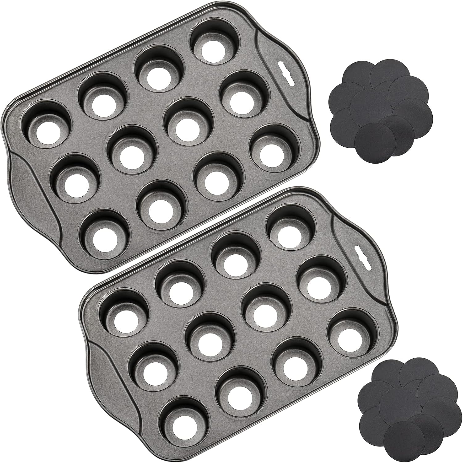 Tosnail 2 Pack 12 Cavity Mini Cheesecake Pan with Removable Bottom