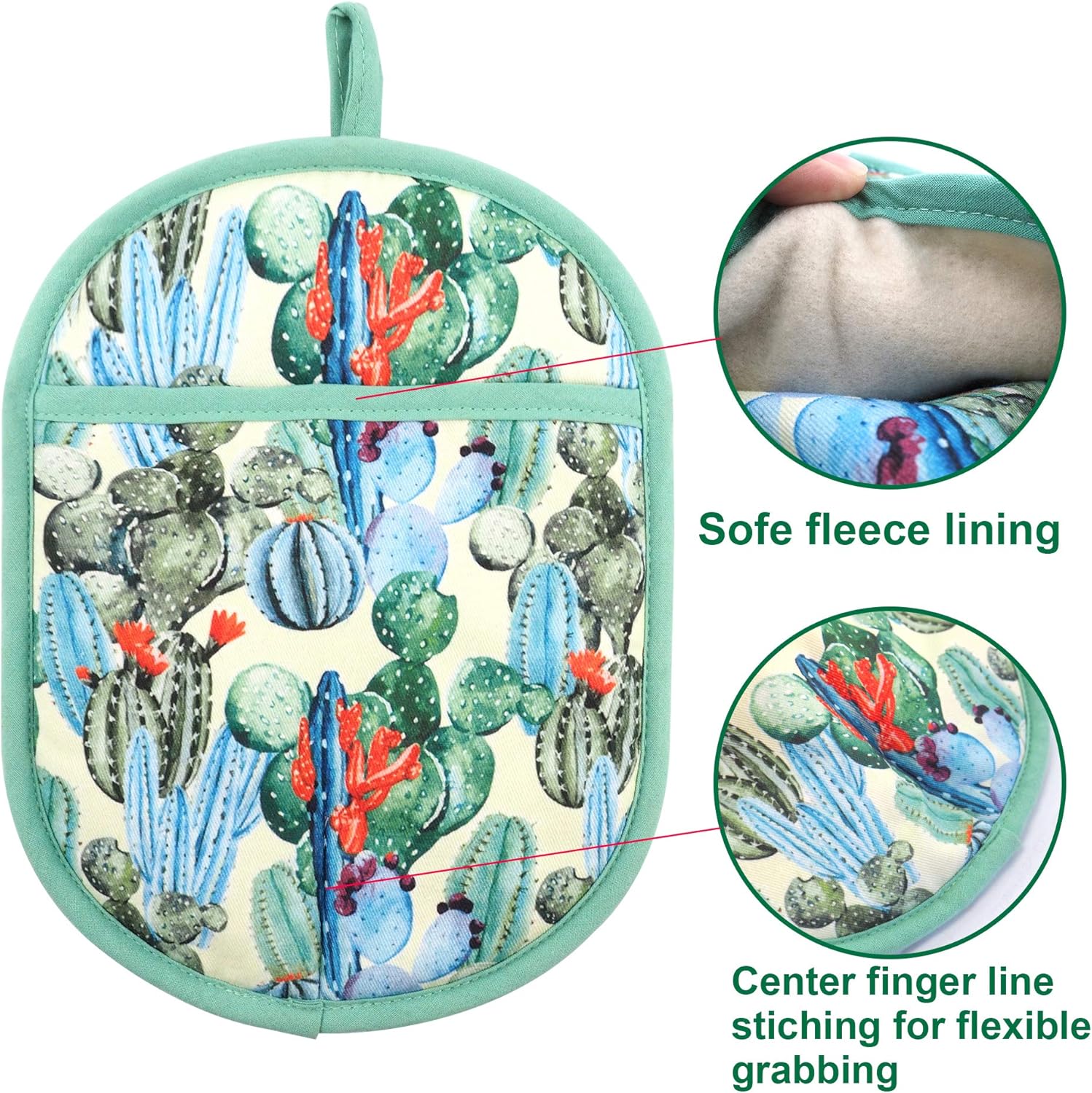 Pot Holders Set of 2 with Transparent Clear Silicone Shell and Nice Cactus Flower Cotton Lining, Heat Resistant to 500 F Kitchen Oven Gloves Pot Holder for Cooking (Cactus Flower, Potholders)