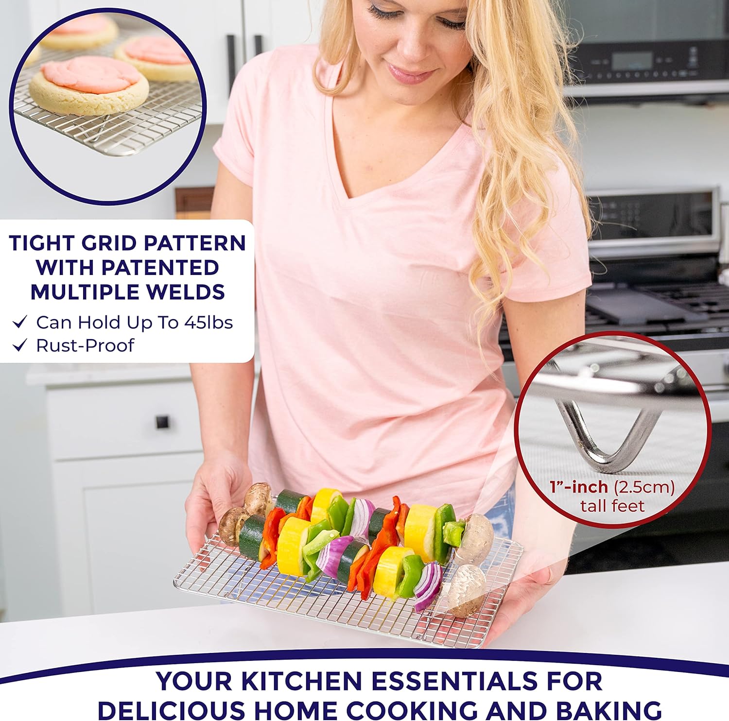 - Set Of 2 8.5” X 12" Inch Quarter Sheet Pan Rack for Cooling & Oven Cooking: Commercial grade 304 stainless baking steel wire rack for baking, roasting, grilling, broiling, smoking etc. Our wire cooling rack has no artificial chrome coating and no rusting.