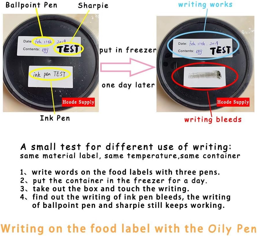 - ❤ Write date and content with a Oily Pen like Ballpoint Pen or marker, prevents your writing bleeds in freezer.