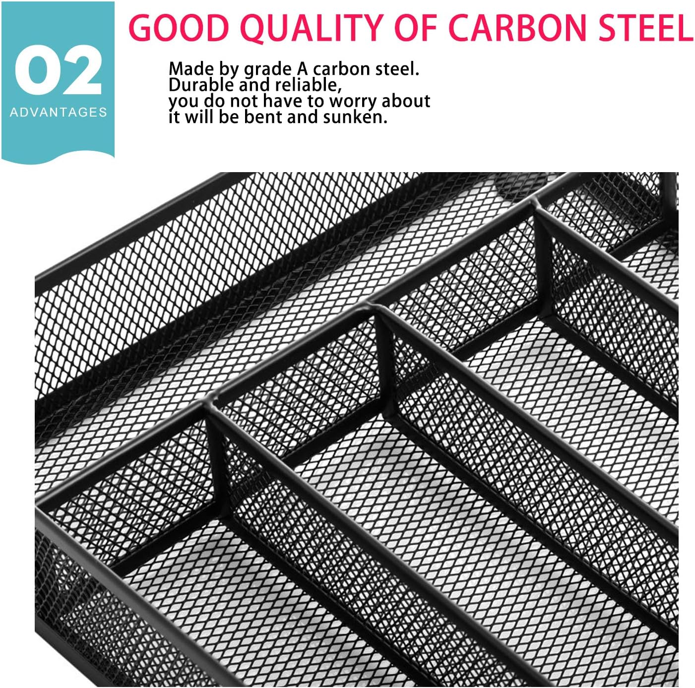 - ăDurable Materială- Sturdy environmental carbon steel with black epoxy coated finish protects your flatware from damage. It will not rust.