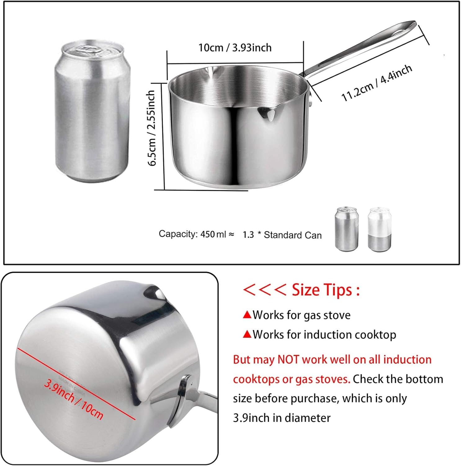 - Induction Compatible: This butter warmer saucepan is suitable for induction, gas or electric stoves. Please be noted that the inner diameter of your induction stovetop should be < 3.9inch/10cm for optimal induction performance.